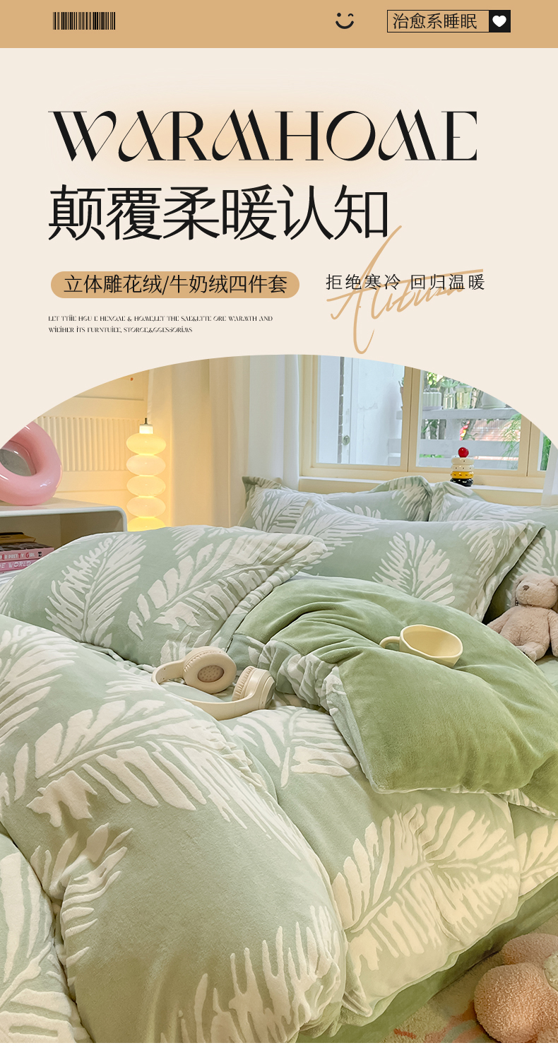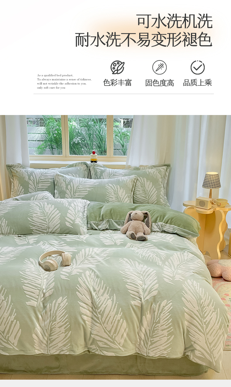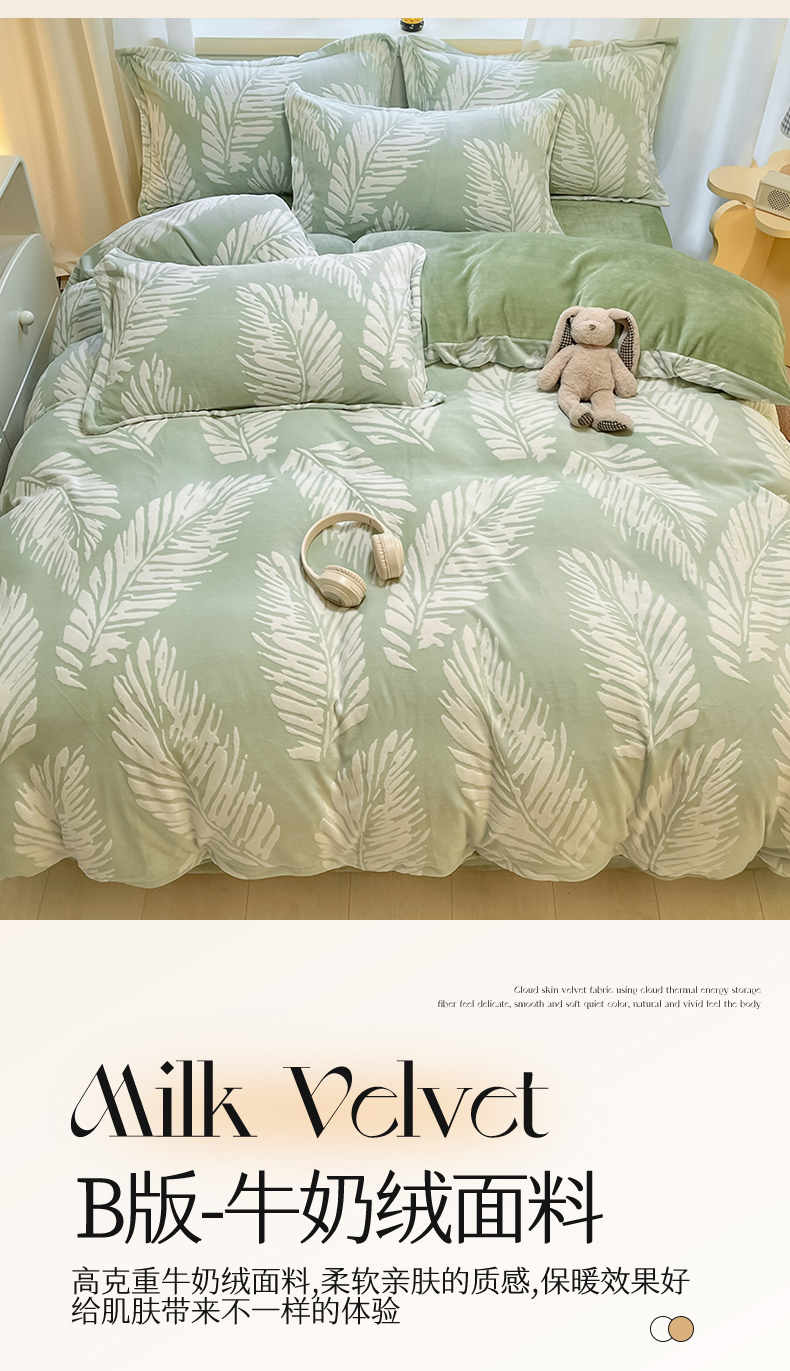 当前位置: 91家纺网 > 商品网购 > 床品套件 > 四件套 > 雕花绒四件套 > 名兮家居 2025新款亲肤舒适高克重雕花绒四件套 羽毛-浅绿