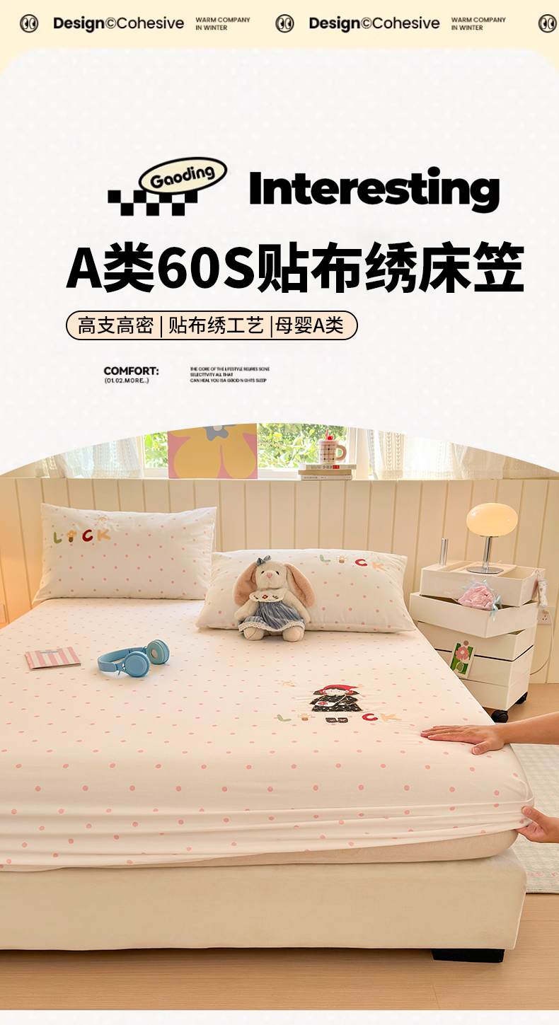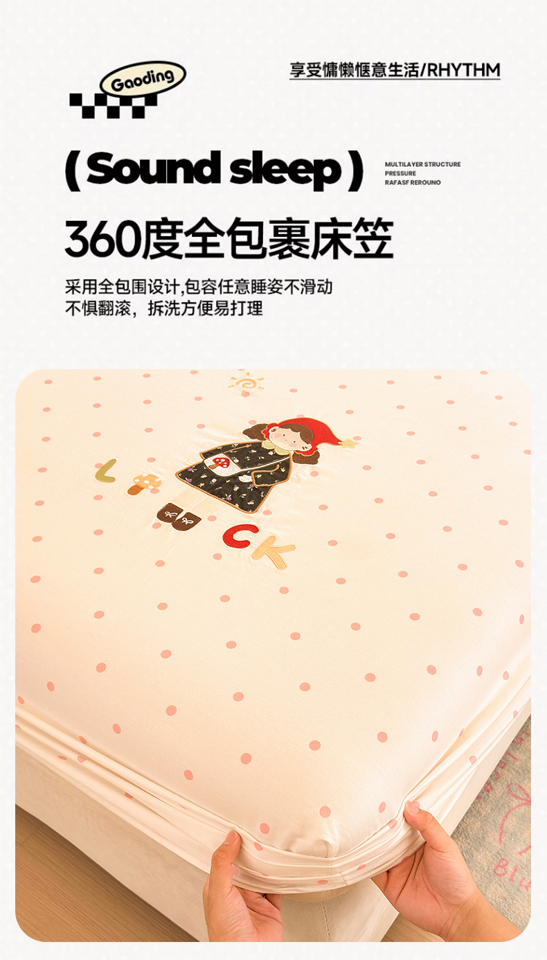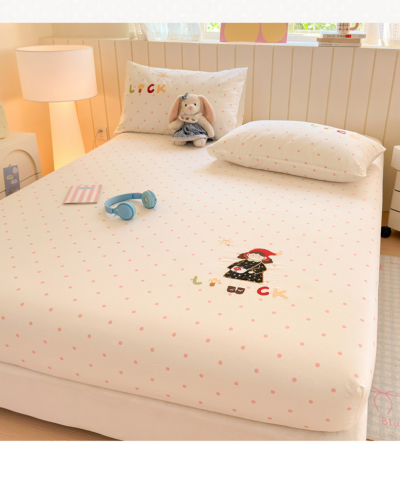 商品名称:娜娜 2025新款60支全棉贴布绣床笠 幸运女孩粉