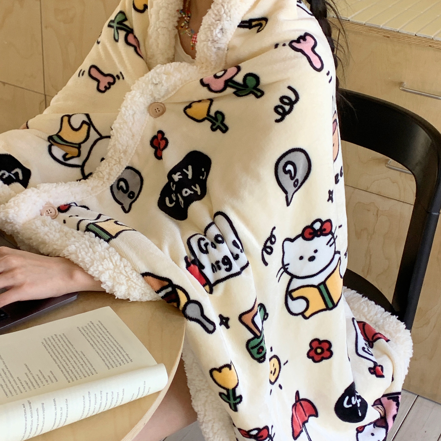 桃喜 2025秋冬新款加厚牛奶绒羊羔绒披肩毯 费尔岛狗狗蓝(羊羔绒披肩毯)