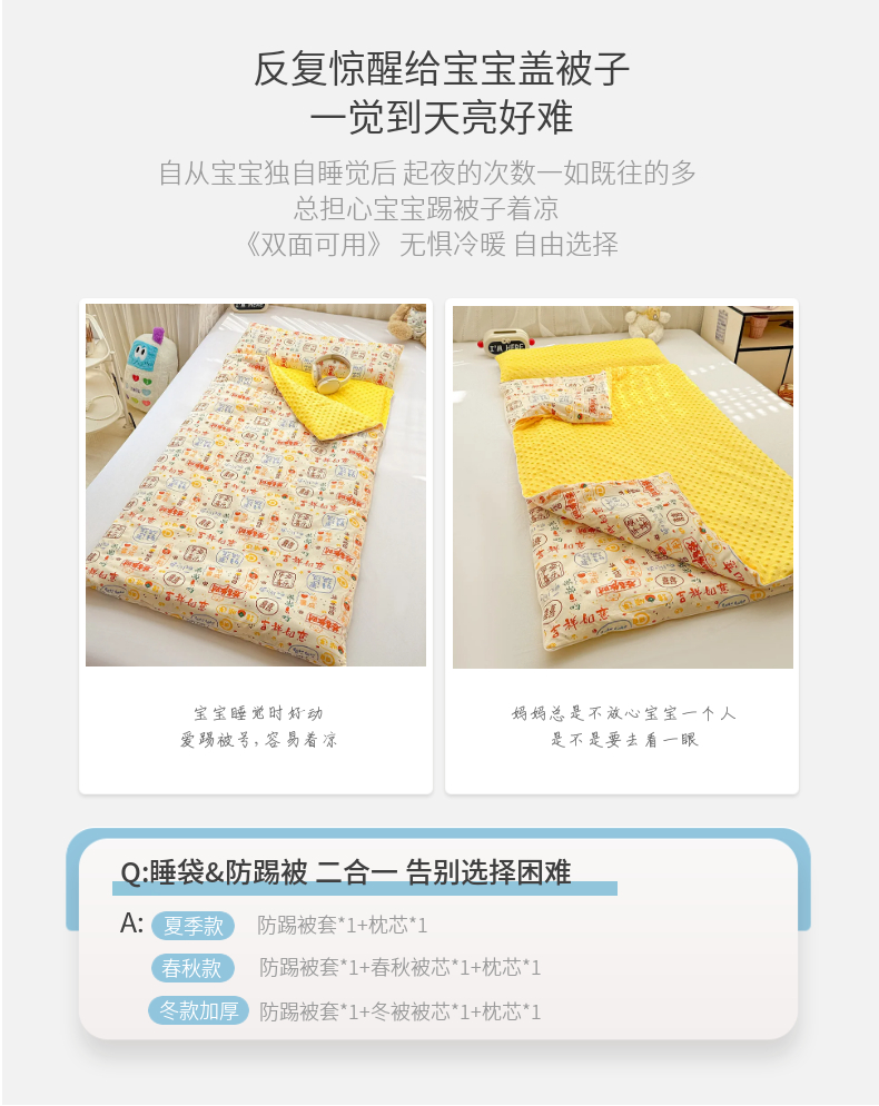 当前位置: 91家纺网 > 商品网购 > 婴童用品 > 婴童睡袋/防踢被 > 十九色 2025新款亲肤舒适活套可拆全棉豆豆绒儿童睡袋防踢被 好运满满