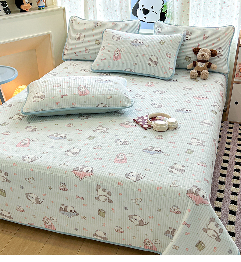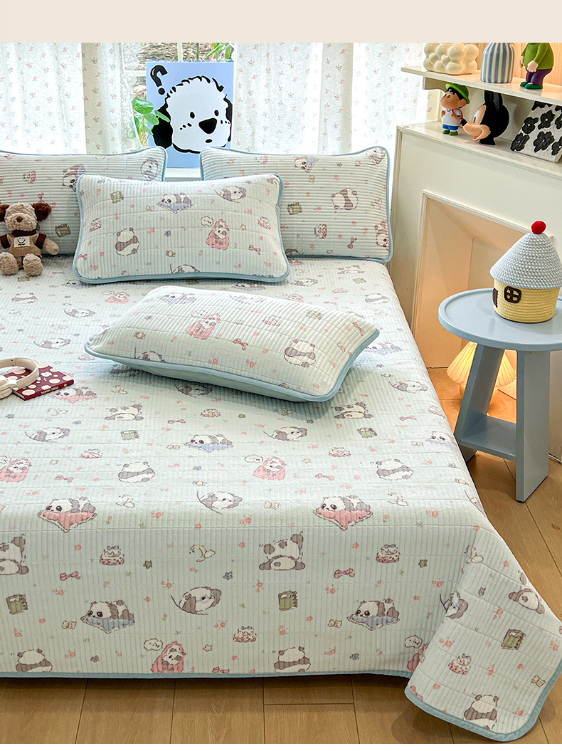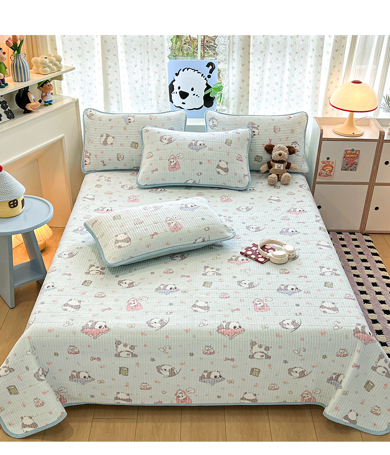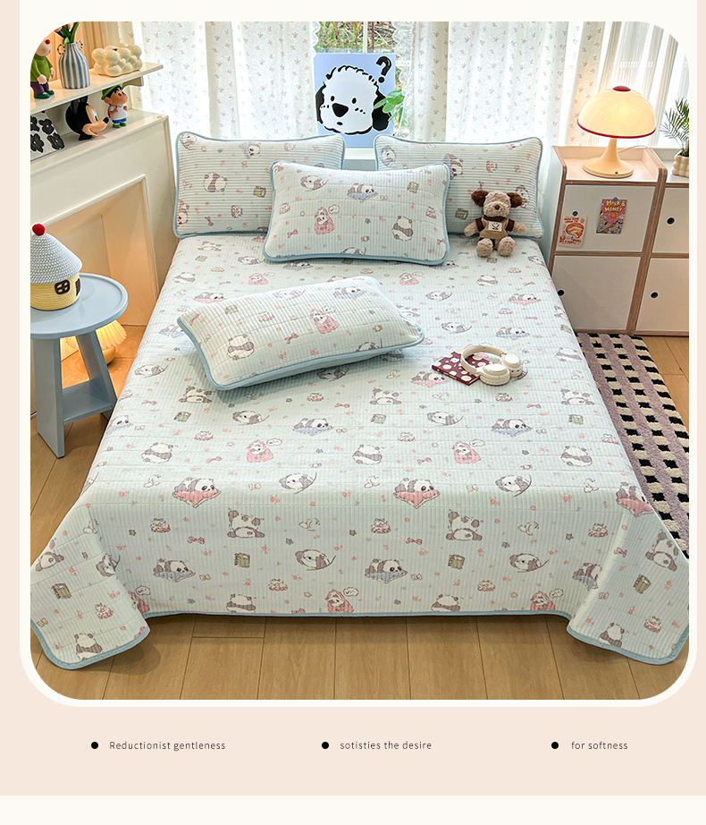 茉夕家纺 2025新款2025跑量双层纱牛奶绒印花床盖 床盖单件 打趣熊猫