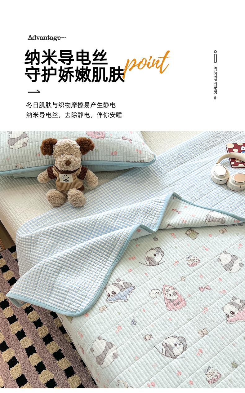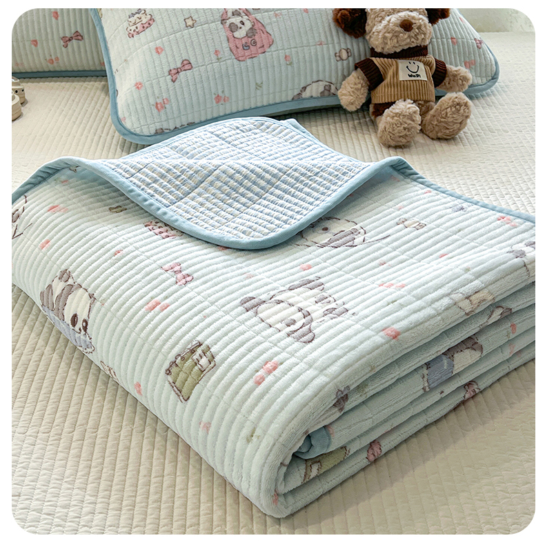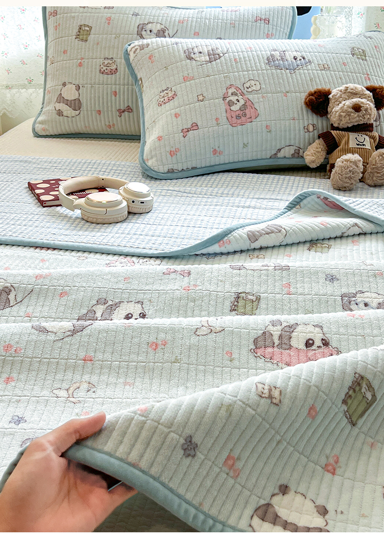 • 91家纺网 家纺一手货源 找家纺 茉夕家纺 2025新款2025跑量双层纱牛奶绒印花床盖 床盖单件 打趣熊猫