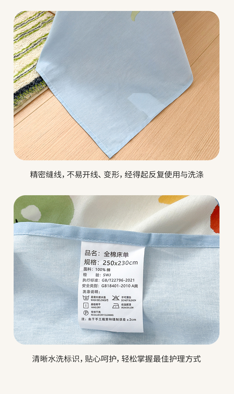 130x230cm单床单+枕套一只 | ¥23.50 |