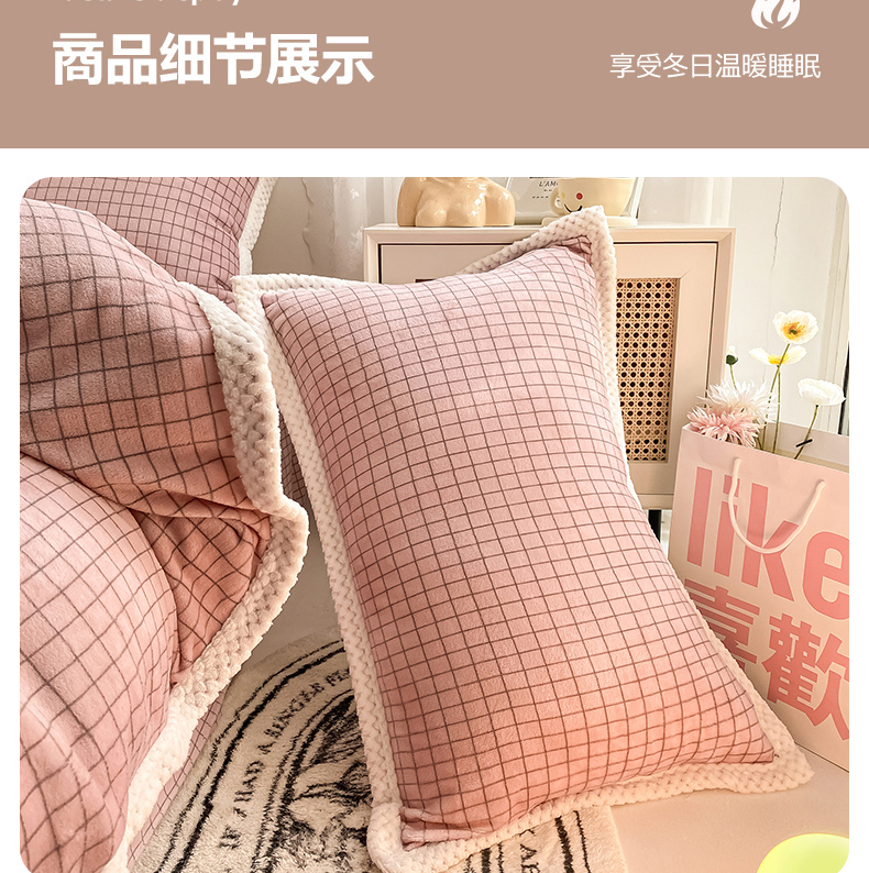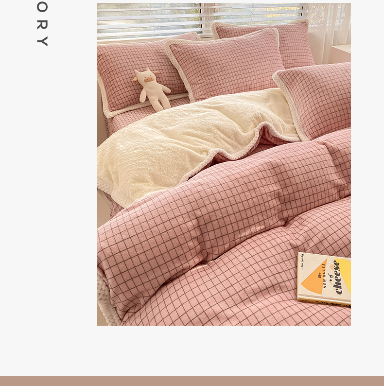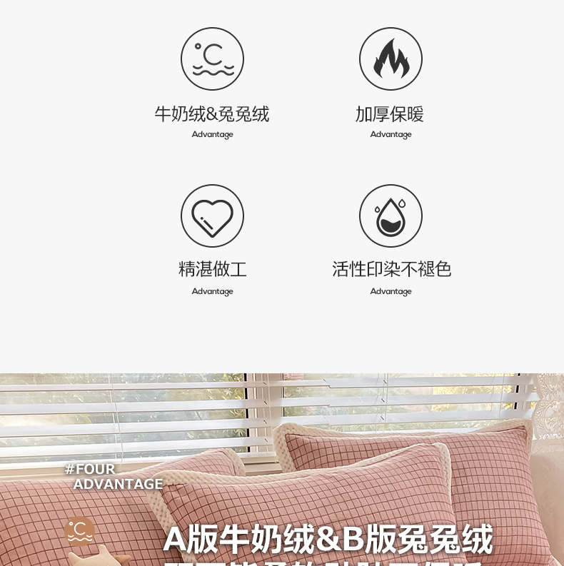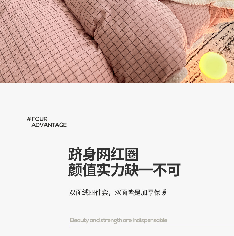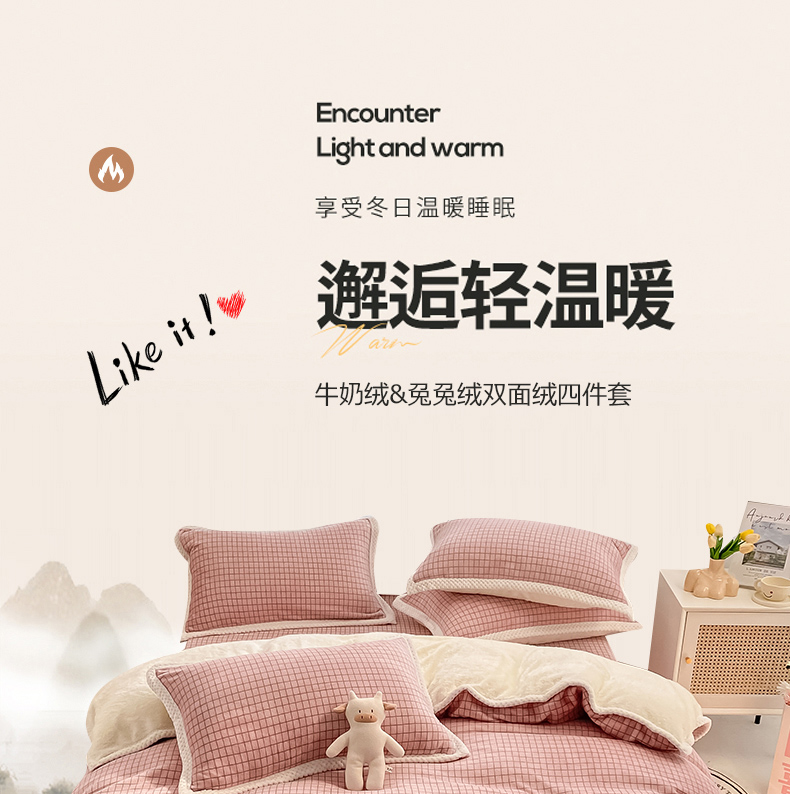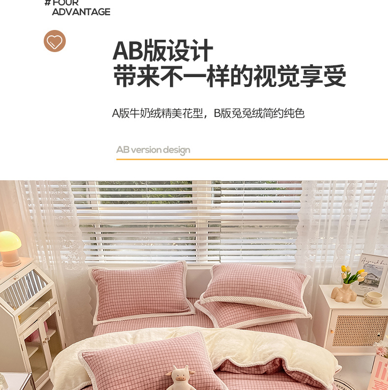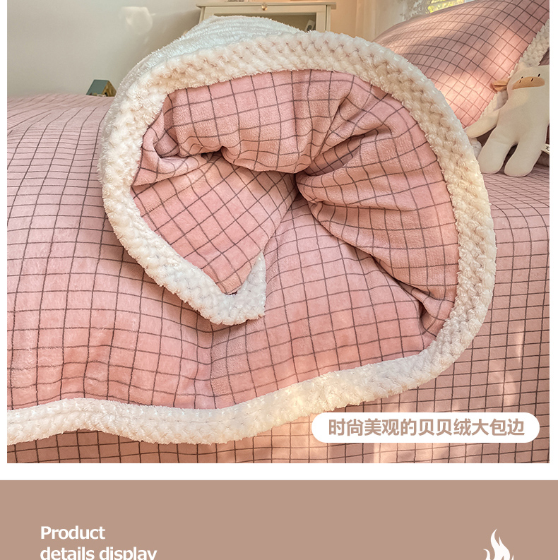 商品名称:琪格格纺织 2025新款A牛奶绒B兔兔绒保暖印花四件套 大包边绒粉小格