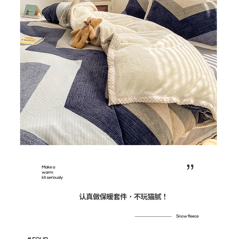 商品名称:琪格格纺织 2025新款A牛奶绒B兔兔绒保暖印花四件套 牛奶绒泡泡蛙一