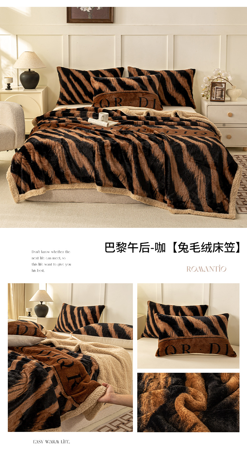 • 91家纺网 家纺一手货源 找家纺 眠势力 2025新款兔毛绒毛毯冬季加绒加厚盖毯兔兔绒保暖毯子带拉链-美拉德系列 洛可可之吻【兔毛绒毛毯拉链款】