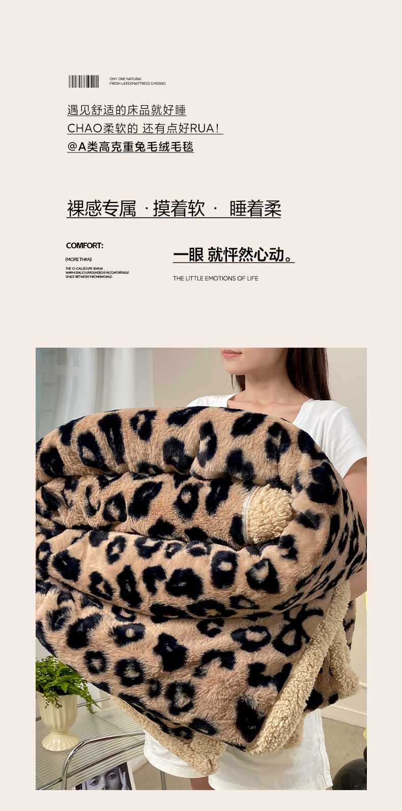 眠势力 2025新款兔毛绒毛毯冬季加绒加厚盖毯兔兔绒保暖毯子带拉链-美拉德系列 洛可可之吻【兔毛绒毛毯拉链款】