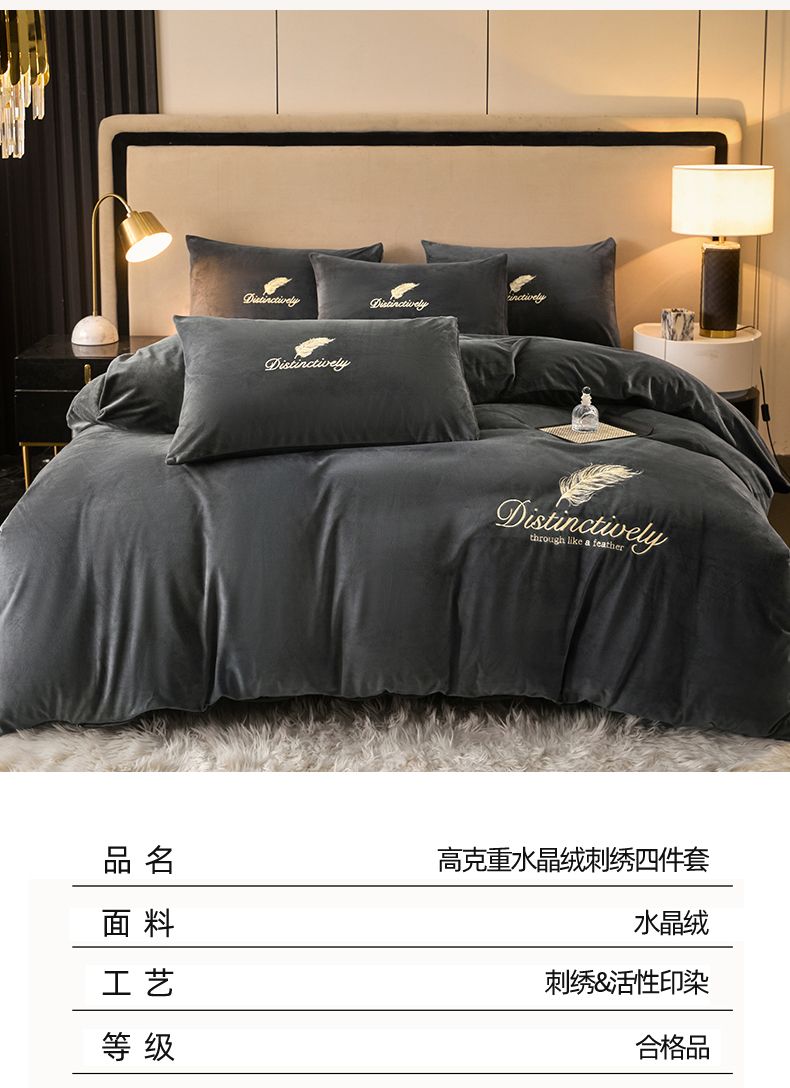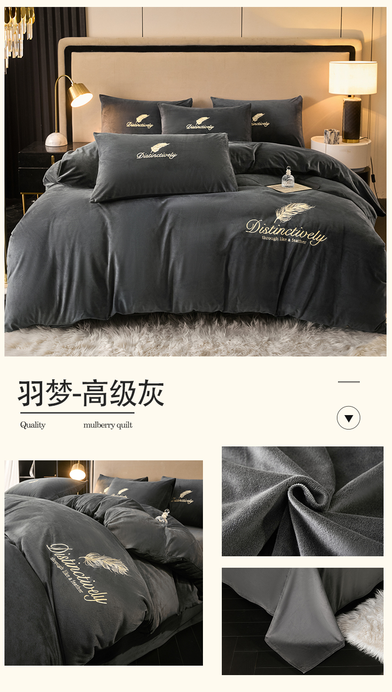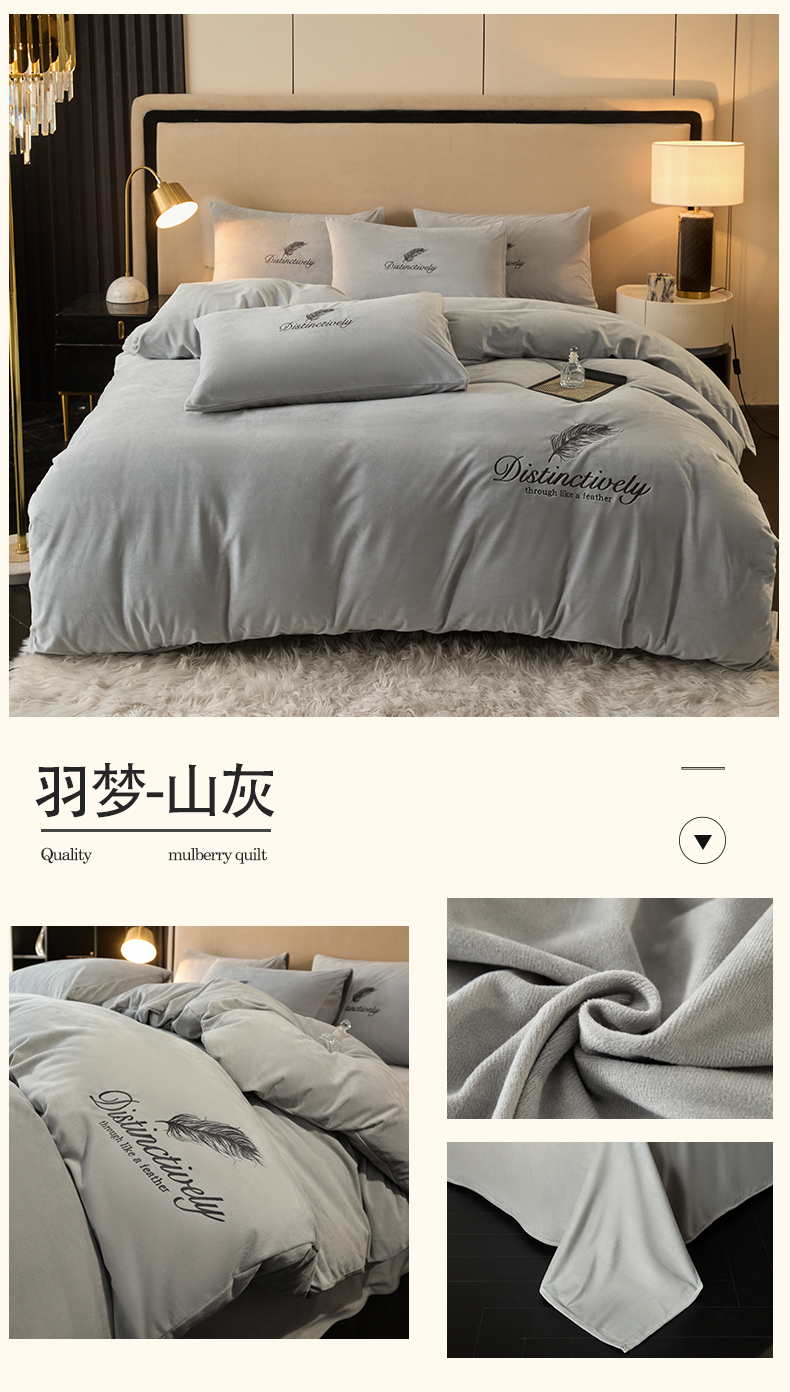 当前位置: 91家纺网 > 商品网购 > 床品套件 > 四件套 > 水晶绒四件套 > 云棉坊 2025新款高克重水晶绒绣花四件套-羽梦系列 羽梦-高级灰