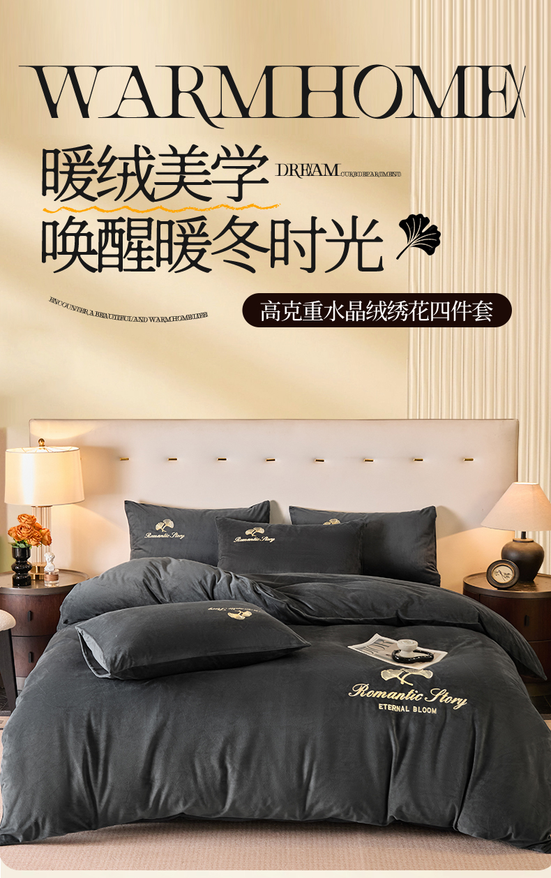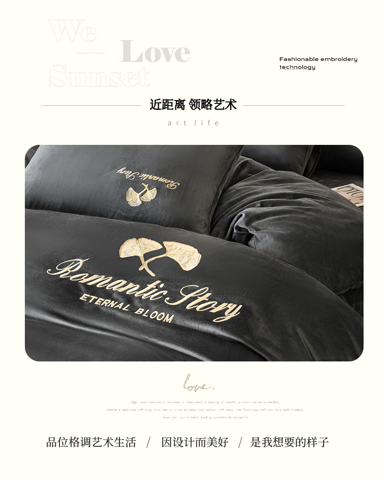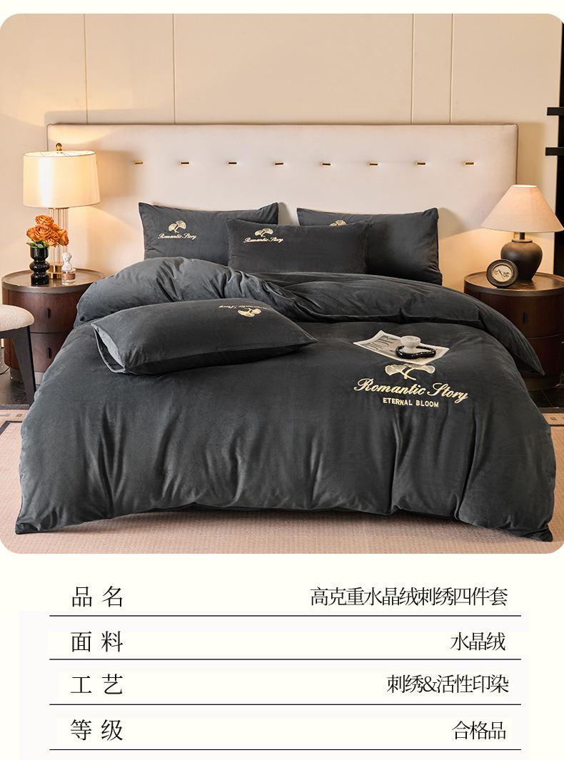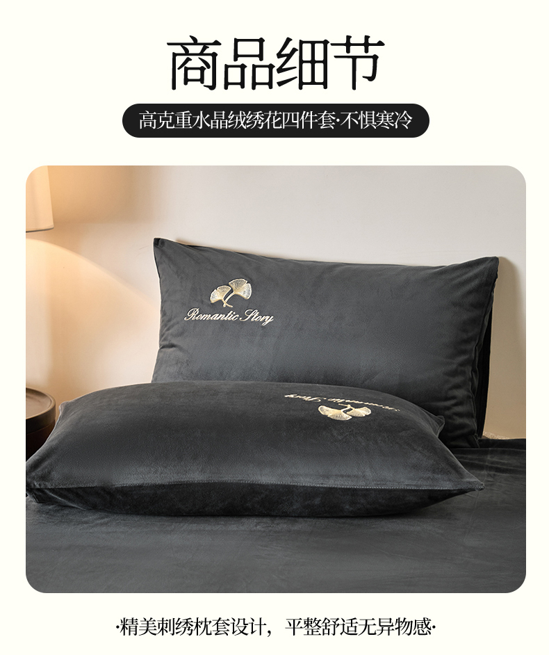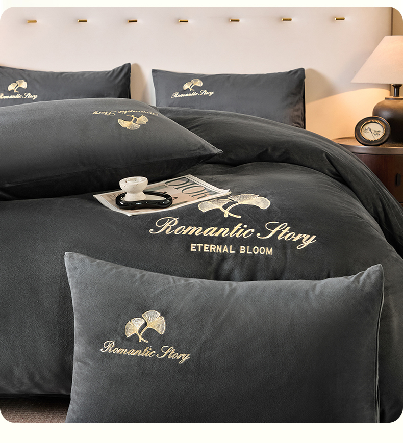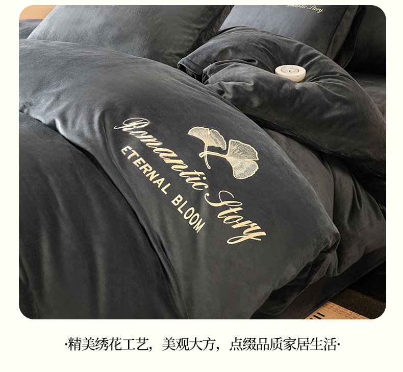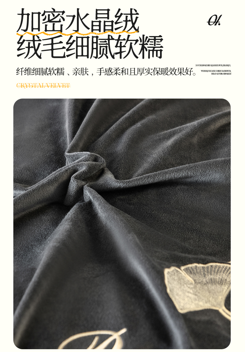 当前位置: 91家纺网 > 商品网购 > 床品套件 > 四件套 > 水晶绒四件套 > 云棉坊 2025新款高克重水晶绒绣花四件套-杏叶系列 杏叶-高级灰