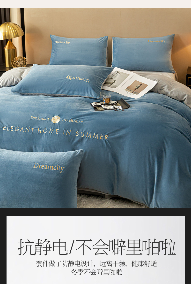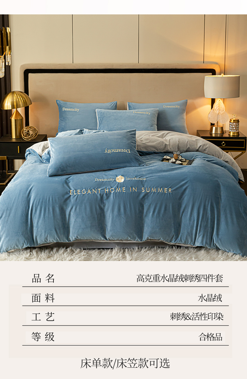 (总)云棉坊 2025新款高克重水晶绒绣花四件套-羽梦系列,羽梦-高级灰,羽梦-宾利蓝,羽梦-蜜桃粉,羽梦-奶白,羽梦-山灰,羽梦-天空兰