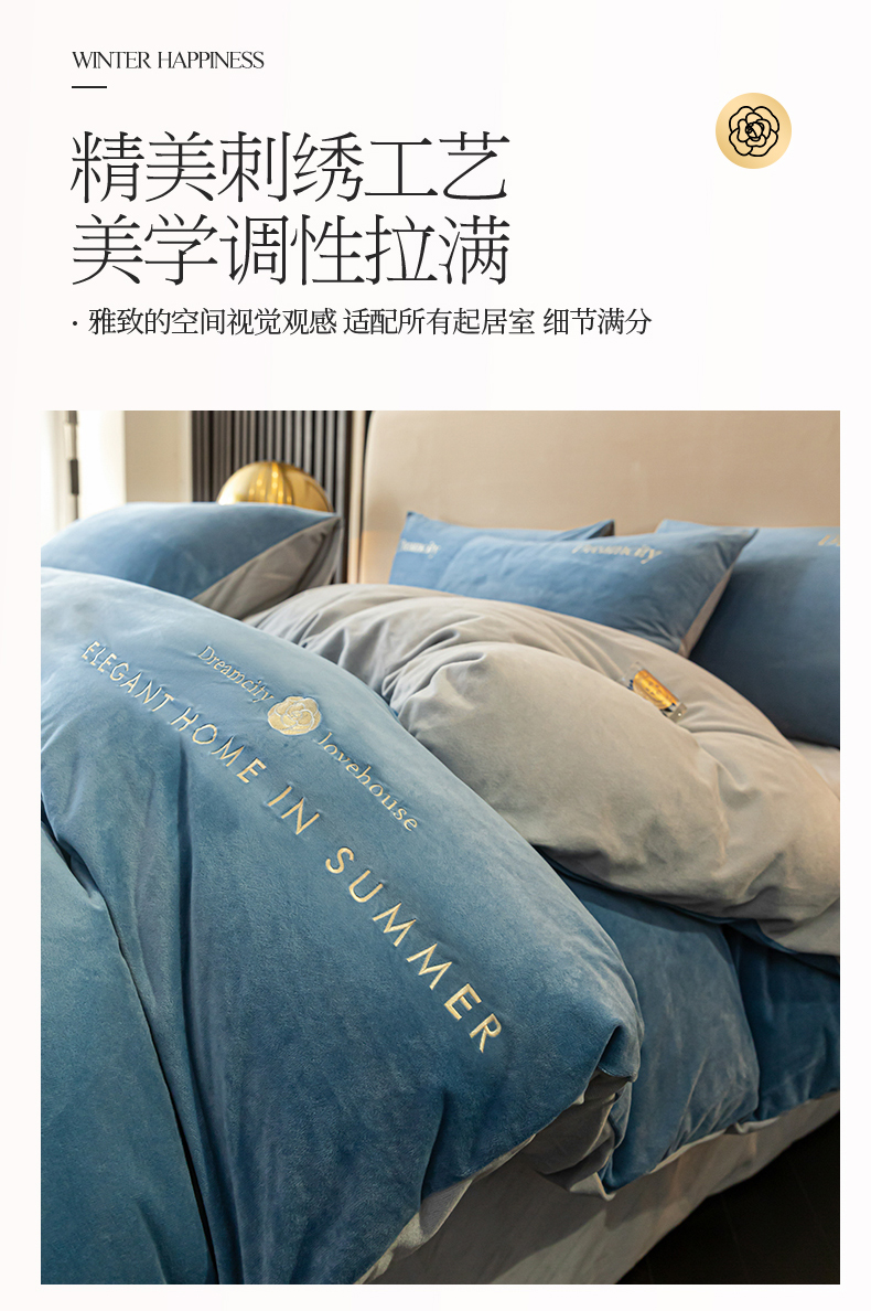 (总)云棉坊 2025新款水晶绒刺绣四件套-初见,初见-宾利蓝,初见-高级灰,初见-蜜桃粉,初见-奶白兰,初见-山灰,初见-天空兰