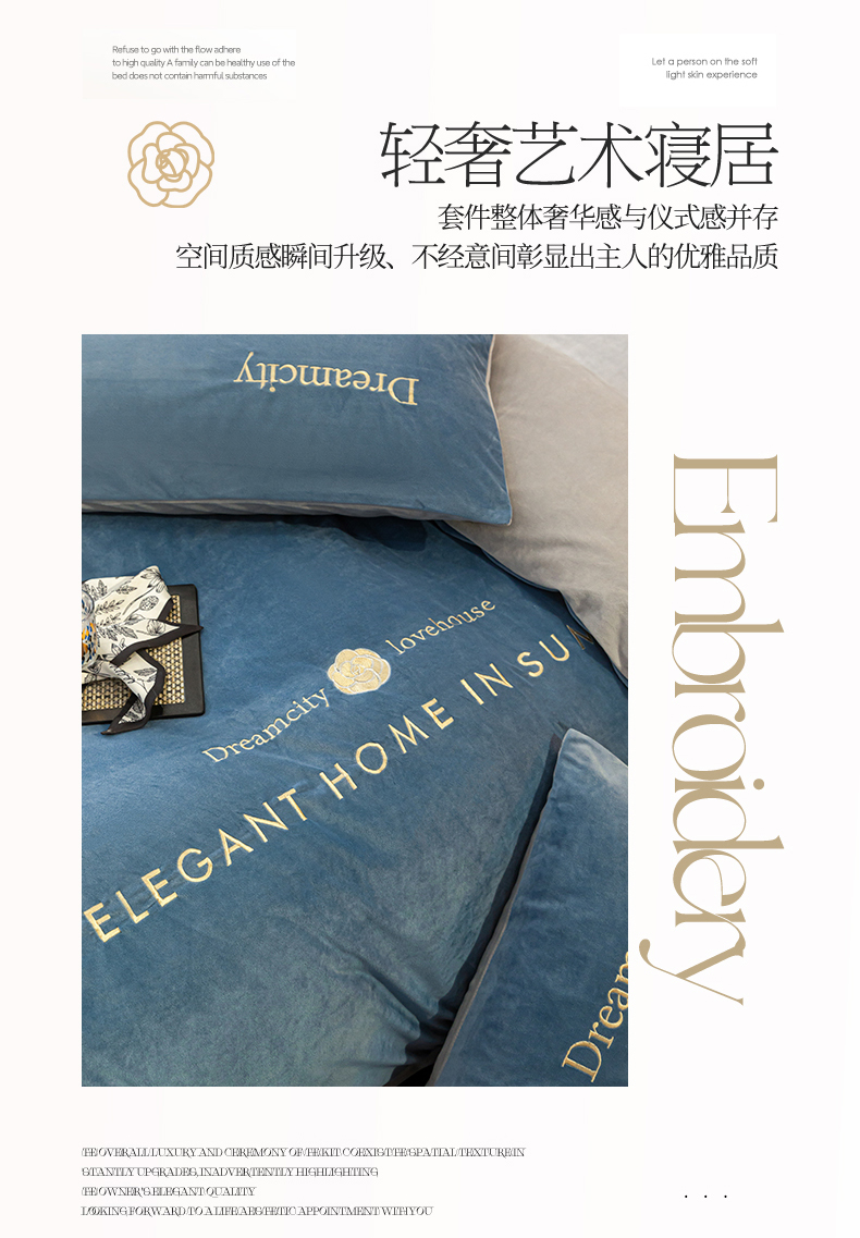 (总)云棉坊 2025新款高克重水晶绒绣花四件套-暗香系列,暗香-宾利蓝,暗香-高级灰,暗香-蜜桃粉,暗香-奶白兰,暗香-山灰,暗香-天空兰