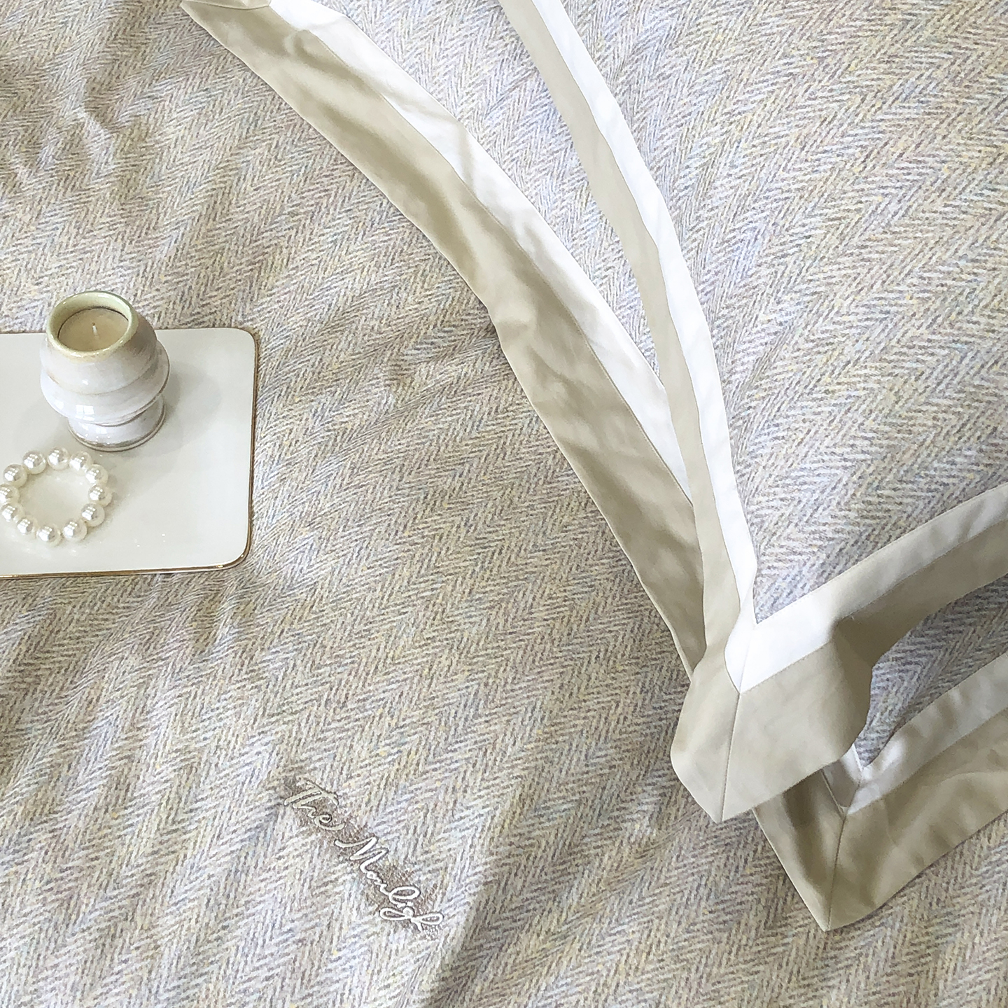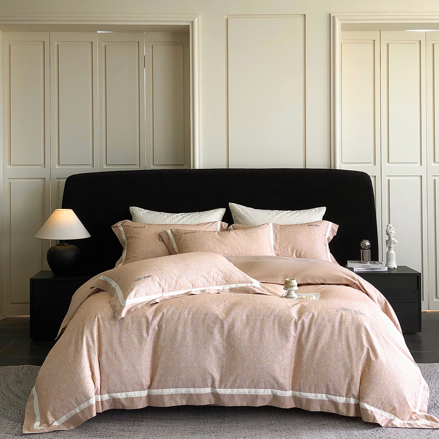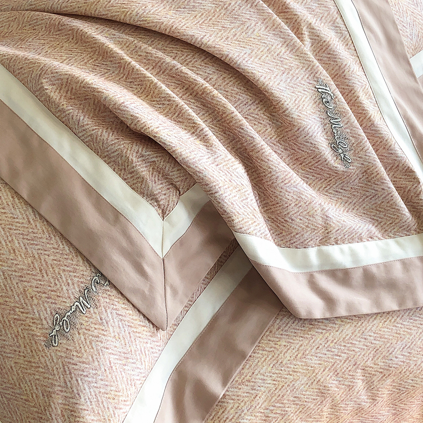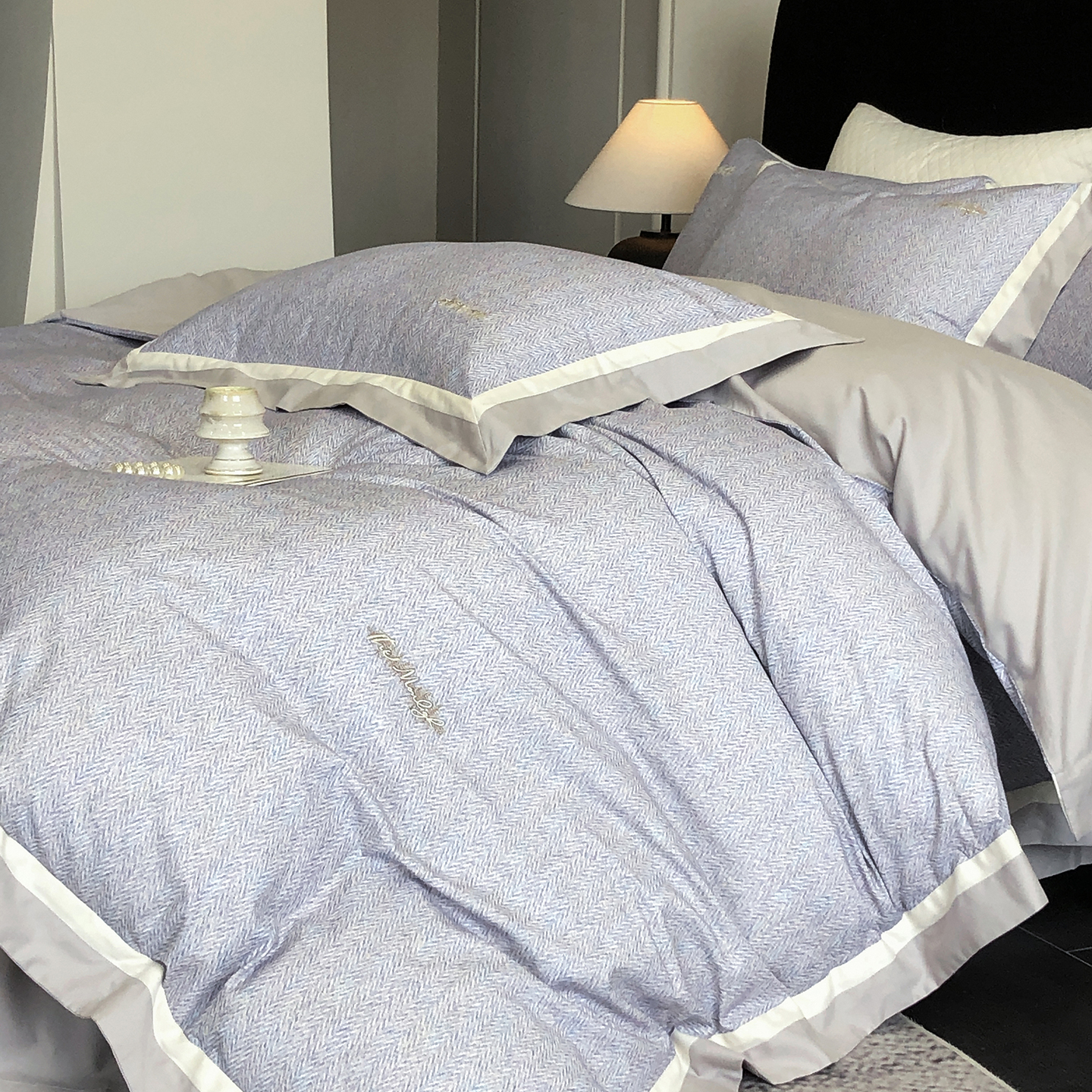 佳汐蓝家纺 2025新款全棉60支磨毛肌理纹撞色拼边四件套-瑶雅系列 瑶雅-兰