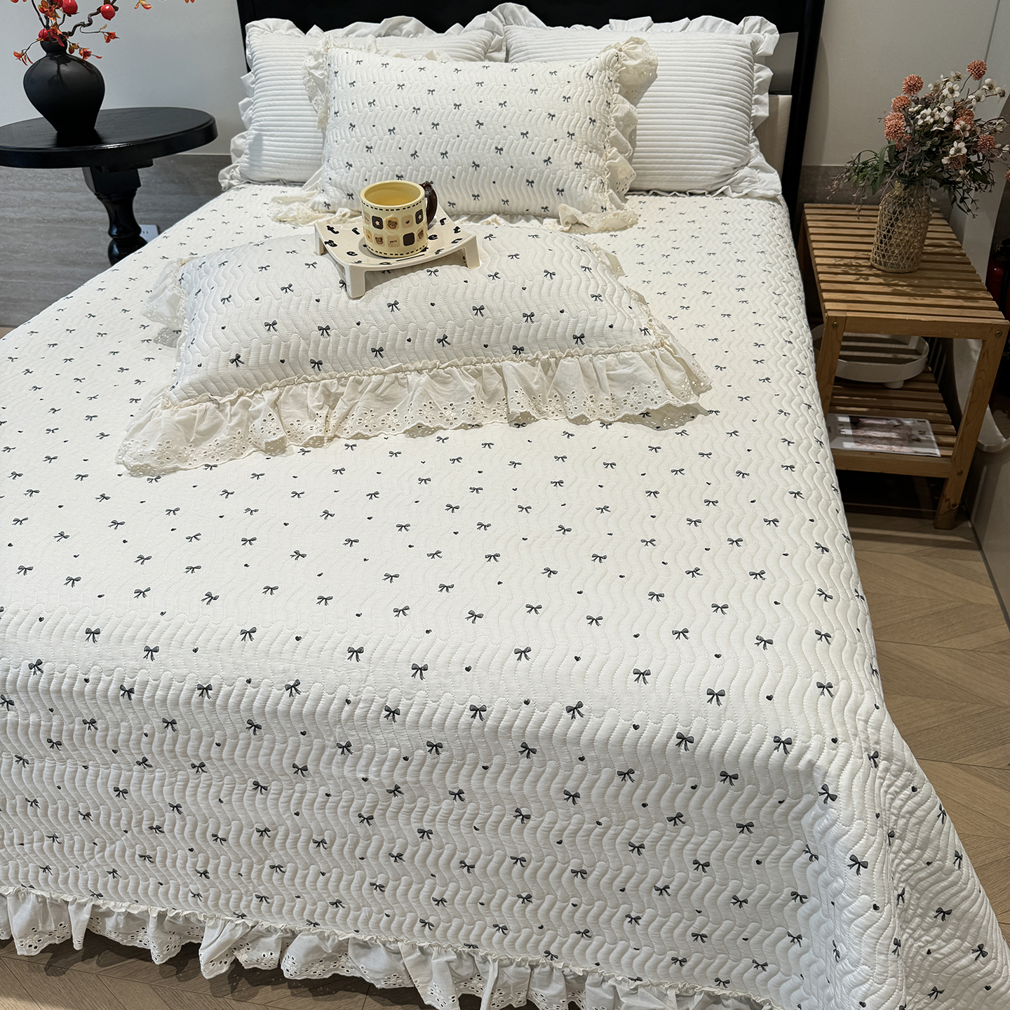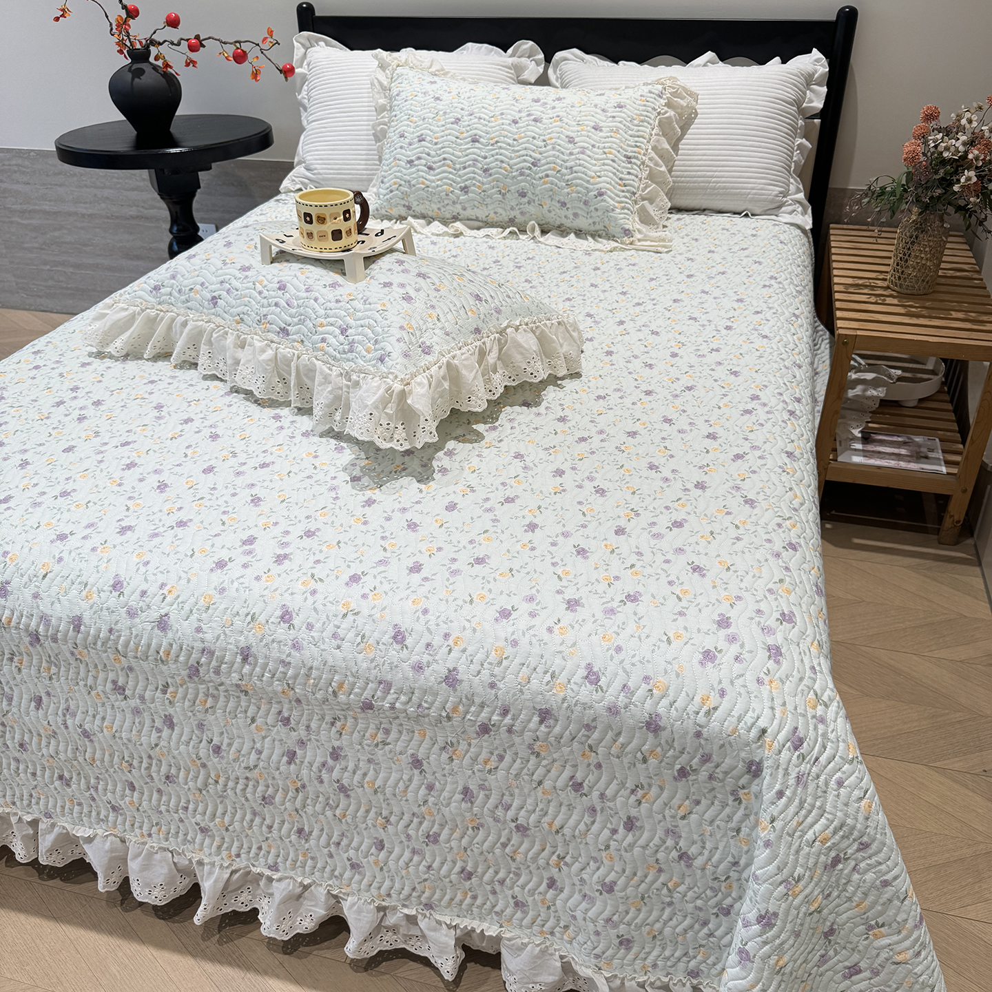 (总)莱豫家纺 2025春夏新款纯棉全棉花边款床盖三件套,呆呆熊,组合图仅供参考,花语绿,花语紫,柠檬,蔷薇,西瓜兔,夏蓝,夏梦,夏之语,小花熊,樱花