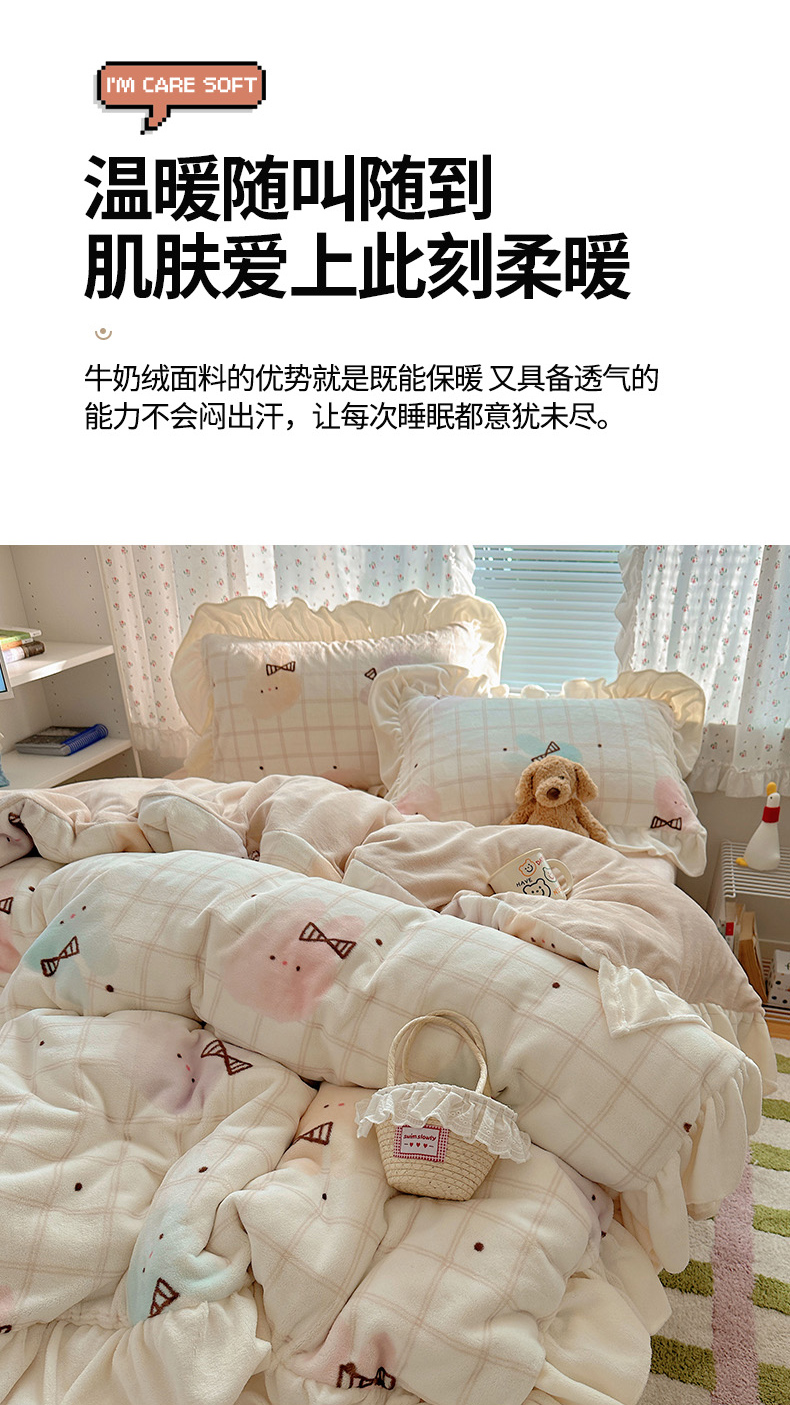 当前位置: 91家纺网 > 商品网购 > 床品套件 > 四件套 > 牛奶绒四件套 > 轻奢坊 2025新款牛奶绒ins博主风卡通印花花边四件套 Q萌格子熊猫