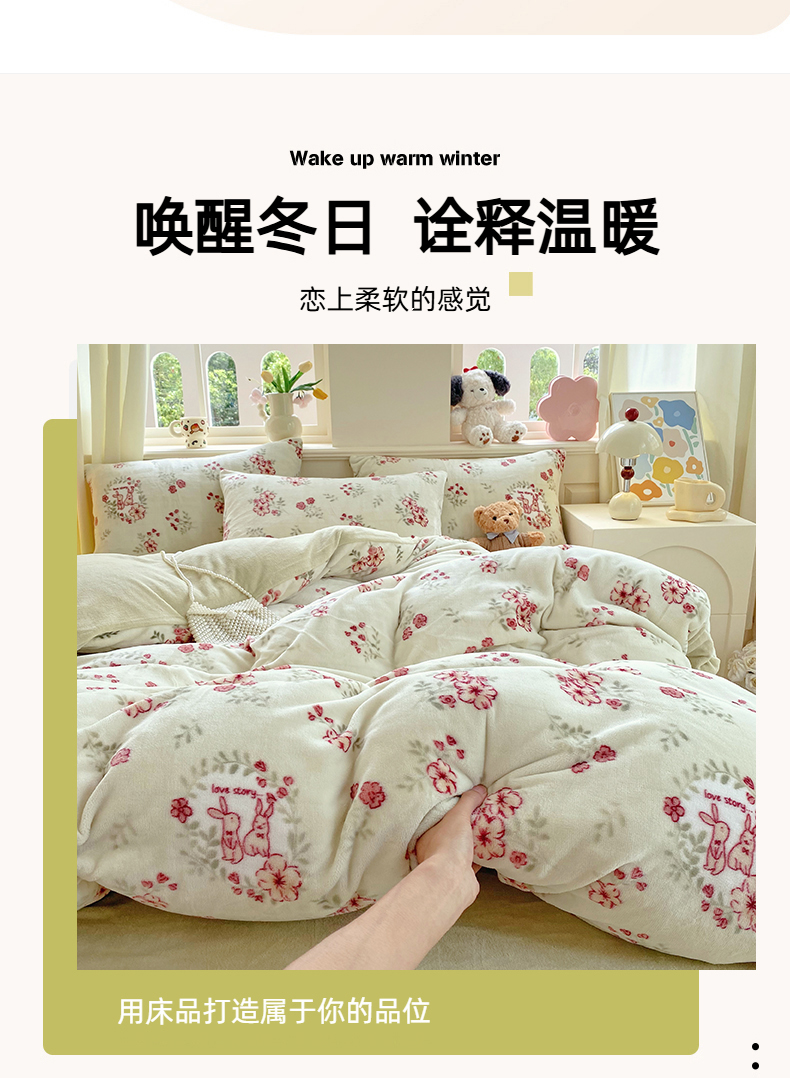 当前位置: 91家纺网 > 商品网购 > 床品套件 > 四件套 > 牛奶绒四件套 > 悦织湾家纺 2025新款高克重牛奶绒印花四件套床单床笠轻奢时尚床上用品三四件套被套 两小无猜