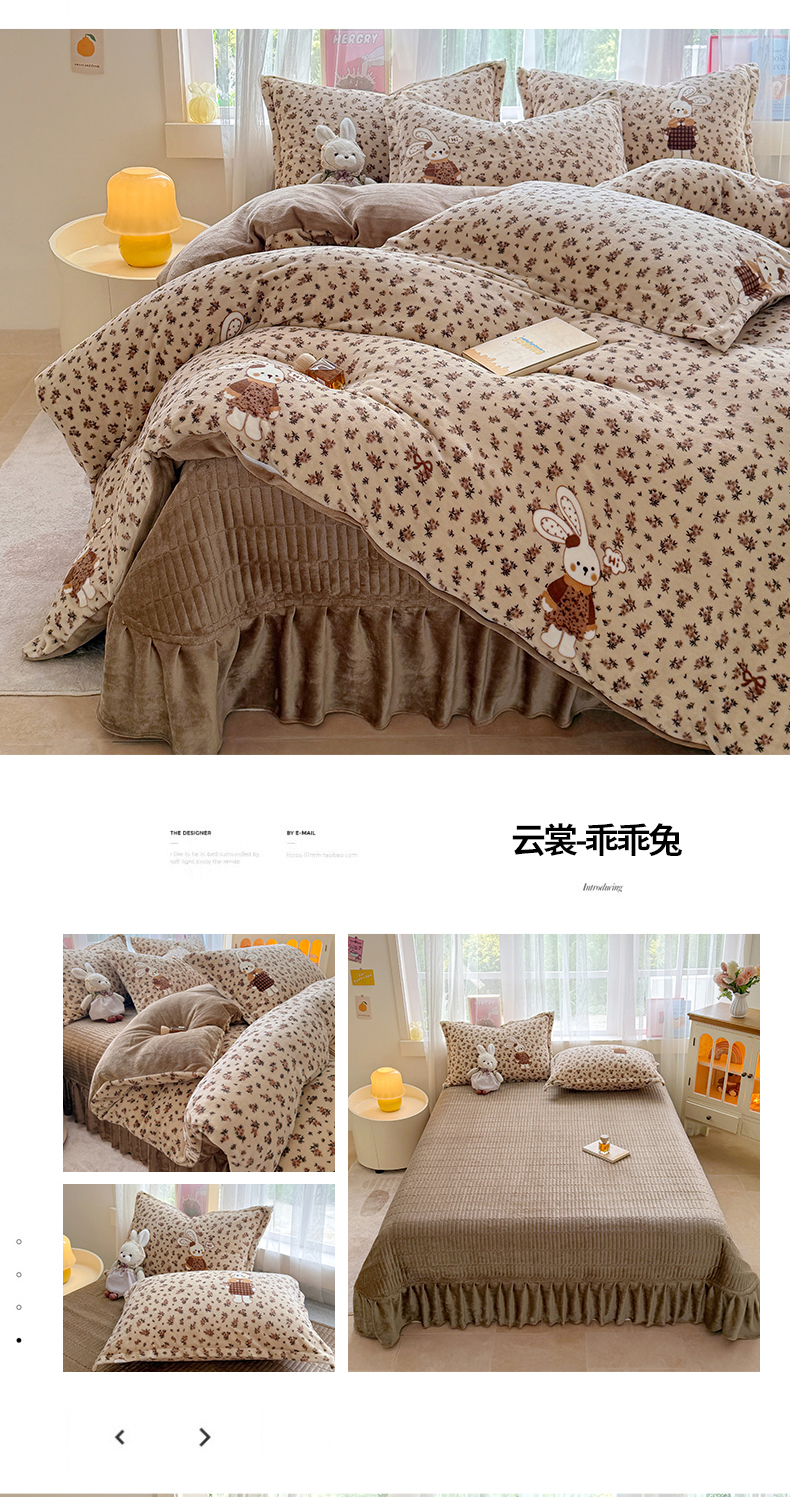 当前位置: 91家纺网 > 商品网购 > 床品套件 > 四件套 > 牛奶绒四件套 > 铠畅 2025新款牛奶绒碎花床单床盖四件套 花妖系列云裳-乖乖兔