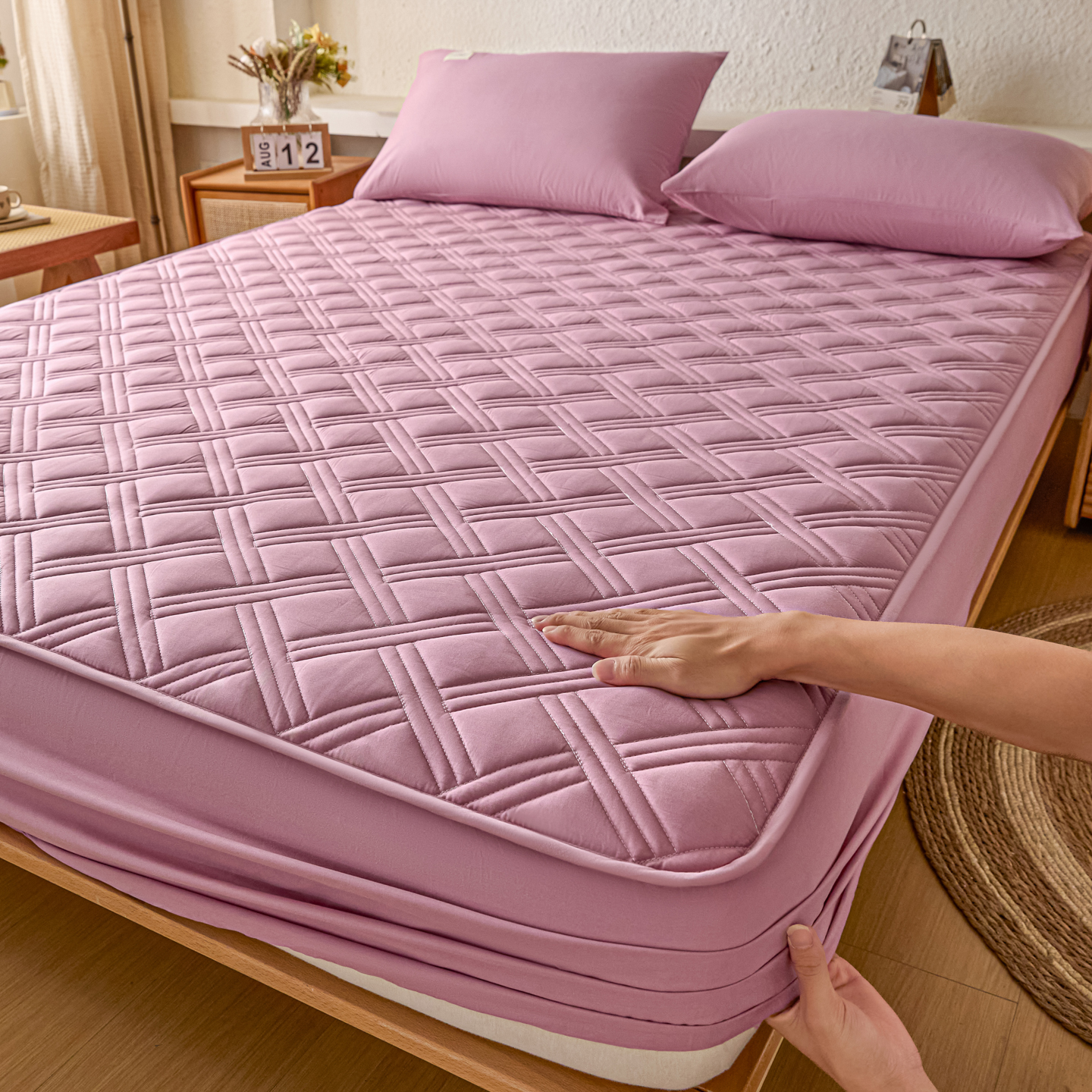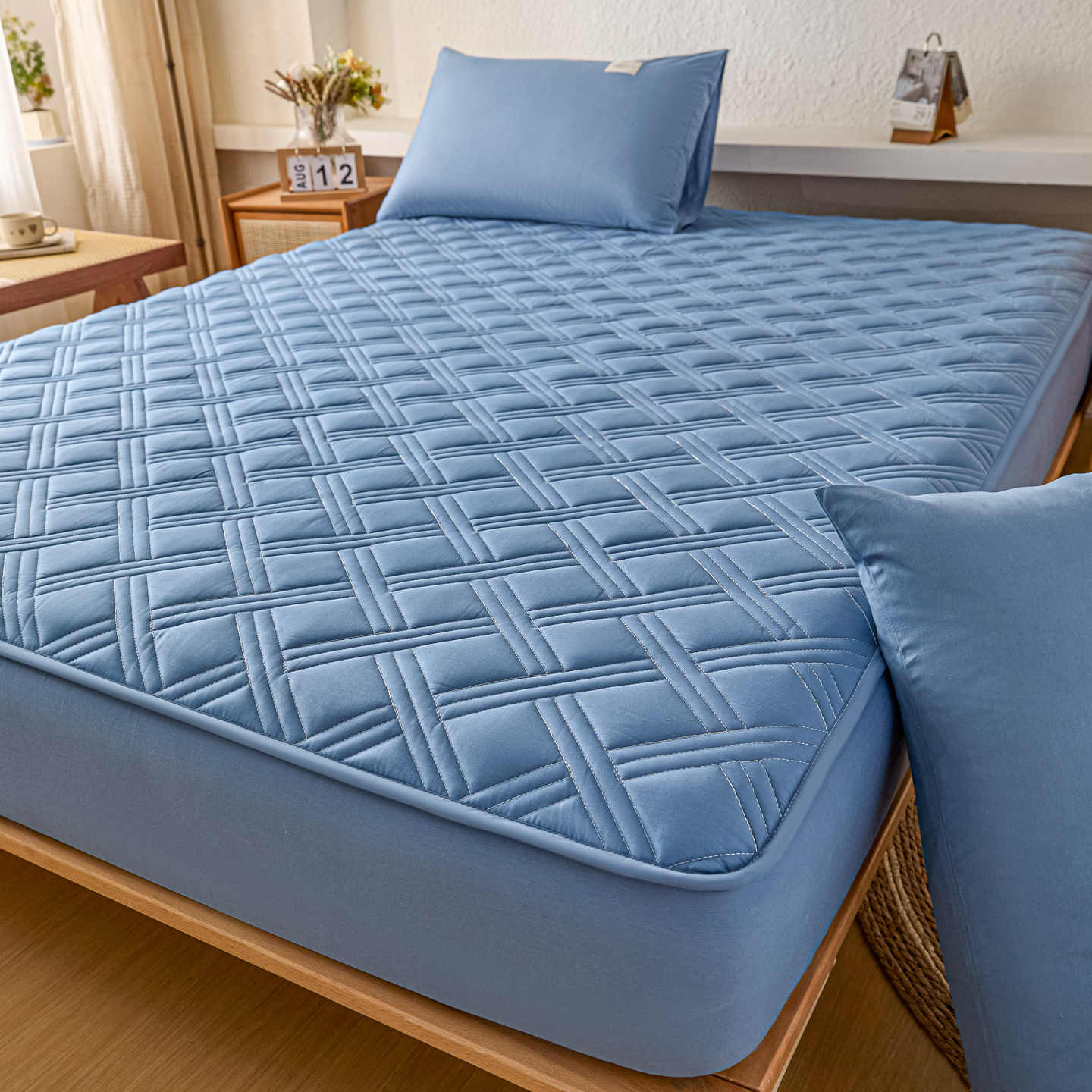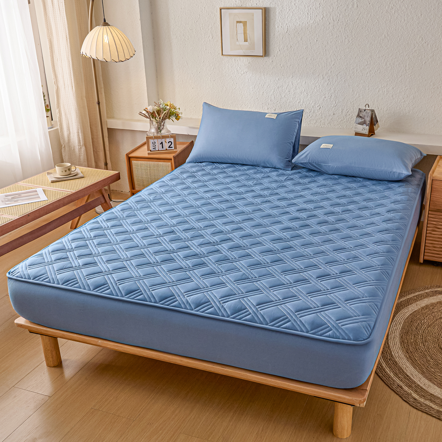 (总)衿成家纺 13372全棉喷起制造抗菌夹棉床笠,宝石蓝,典雅白,粉色,千草,浅灰,紫粉
