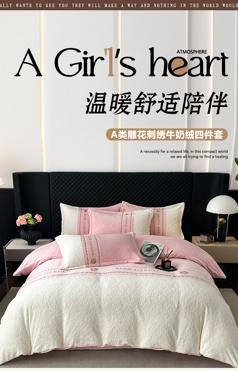 商品名称:(总)沐棉家居 2025新款字母刺绣雕花牛奶绒四件套