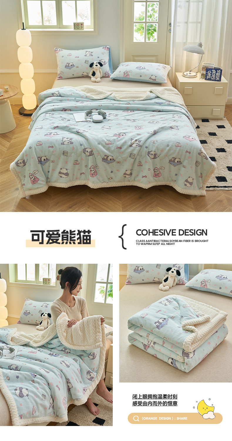 晨曦家纺 2025新款加厚保暖牛奶绒贝贝绒三层夹棉毛毯可爱卡通 熊熊乐园