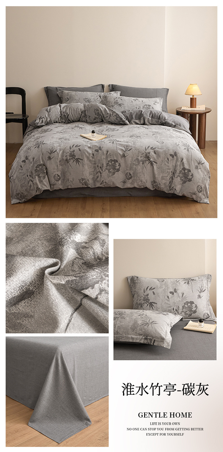 商品名称:良品汇馆 2025【复古三层纱提花四件套】全棉柔软纱布民宿床品 淮水竹亭-蓝灰