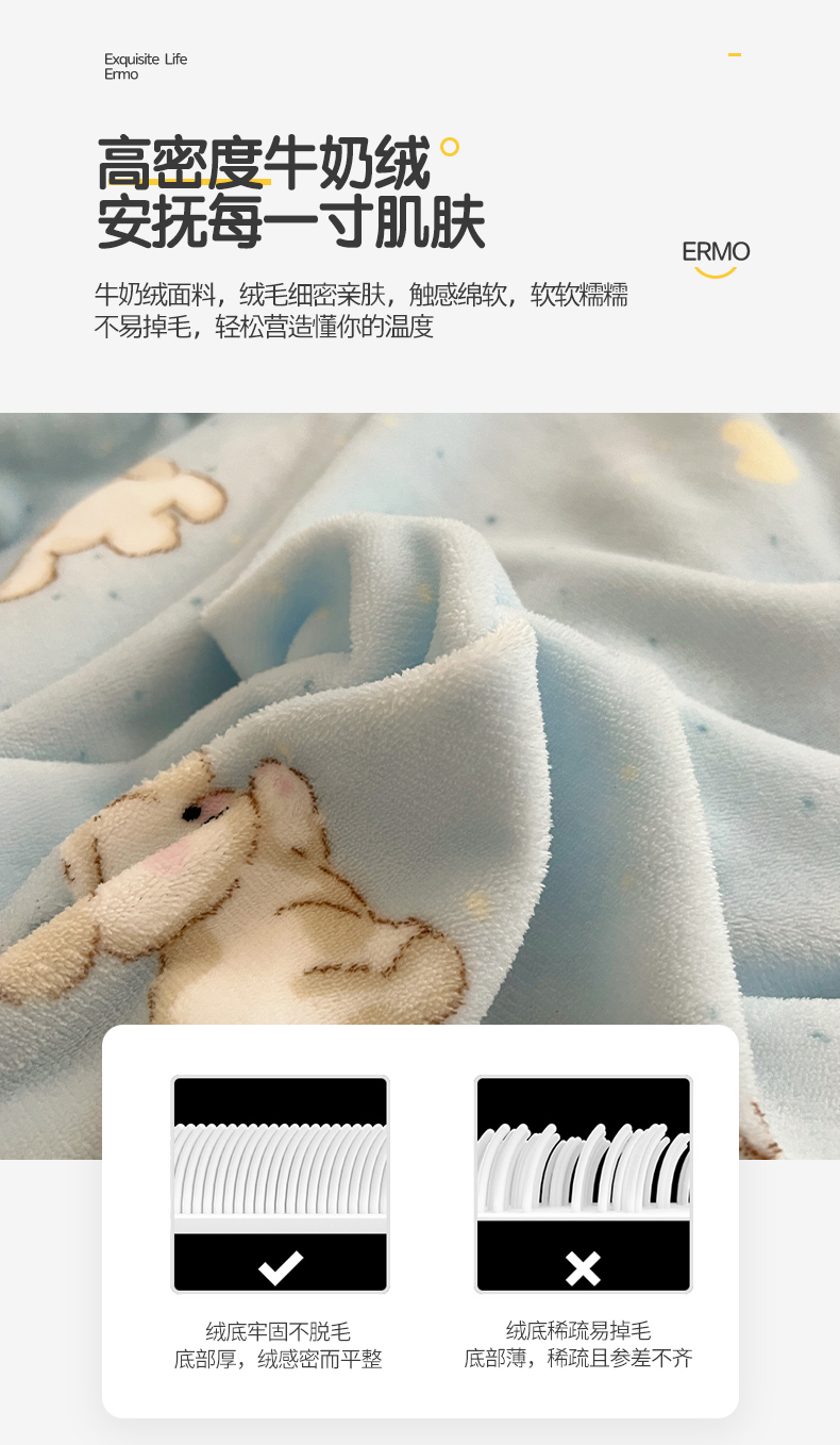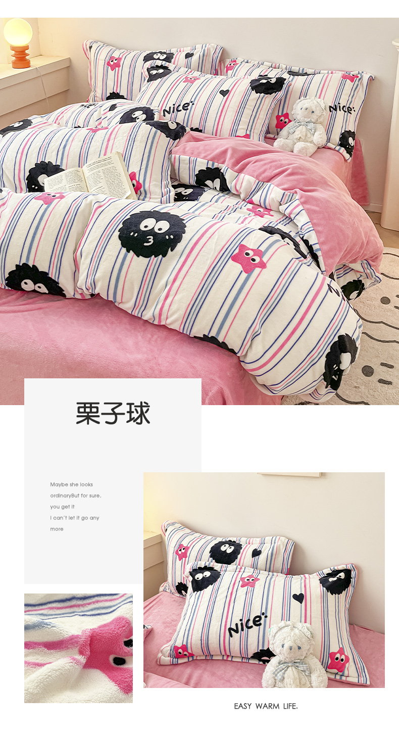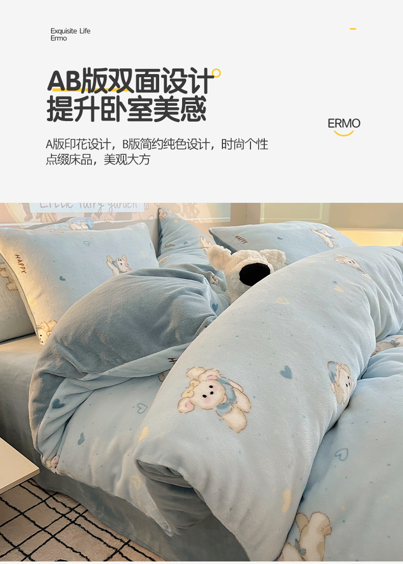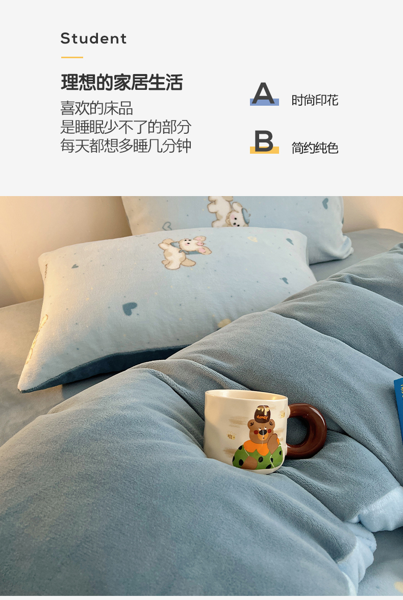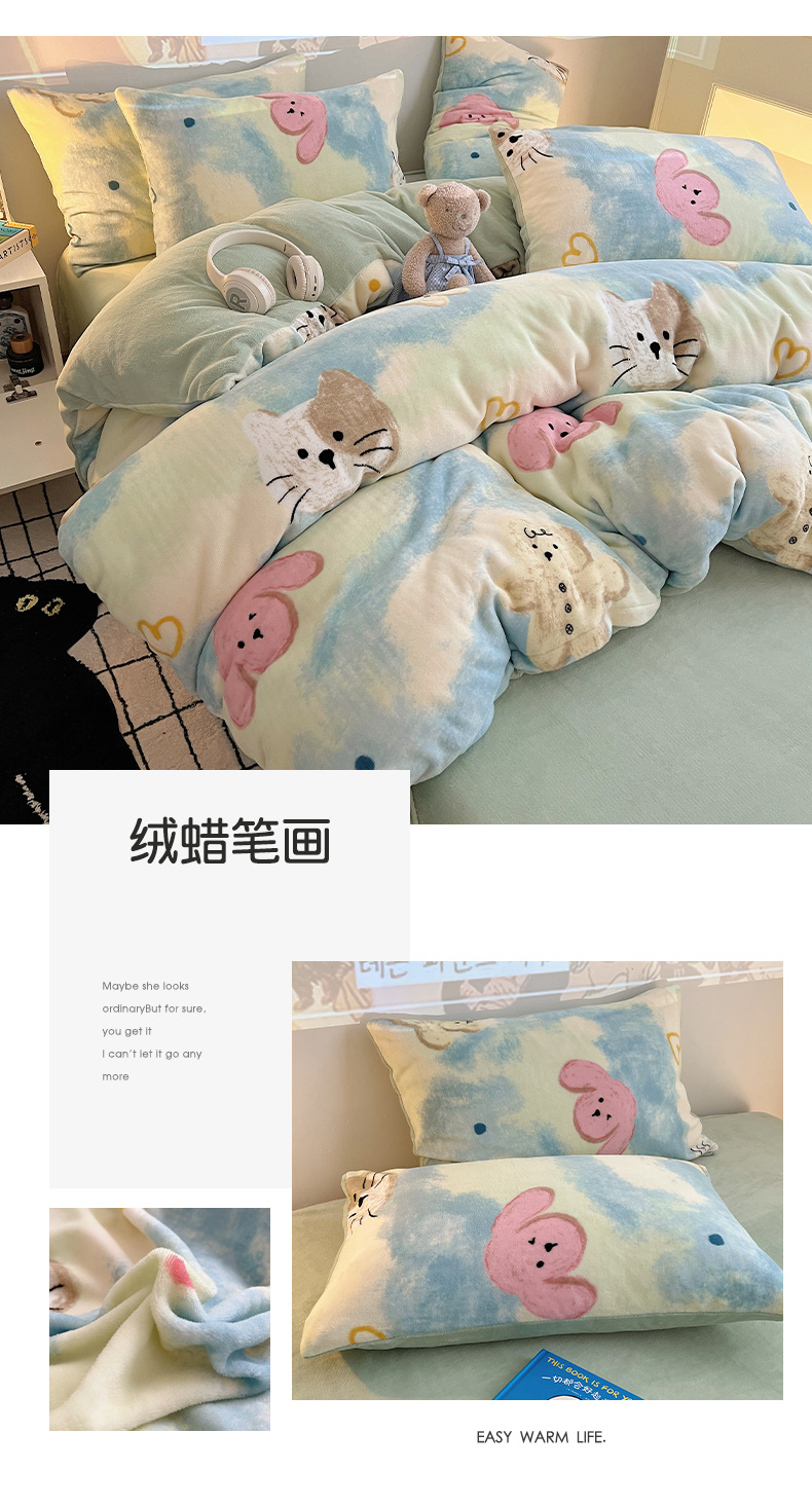 商品名称:瑞莱 2025新款A类200克高克重秋冬印花牛奶绒四件套-卡通系列 绒小奶狗