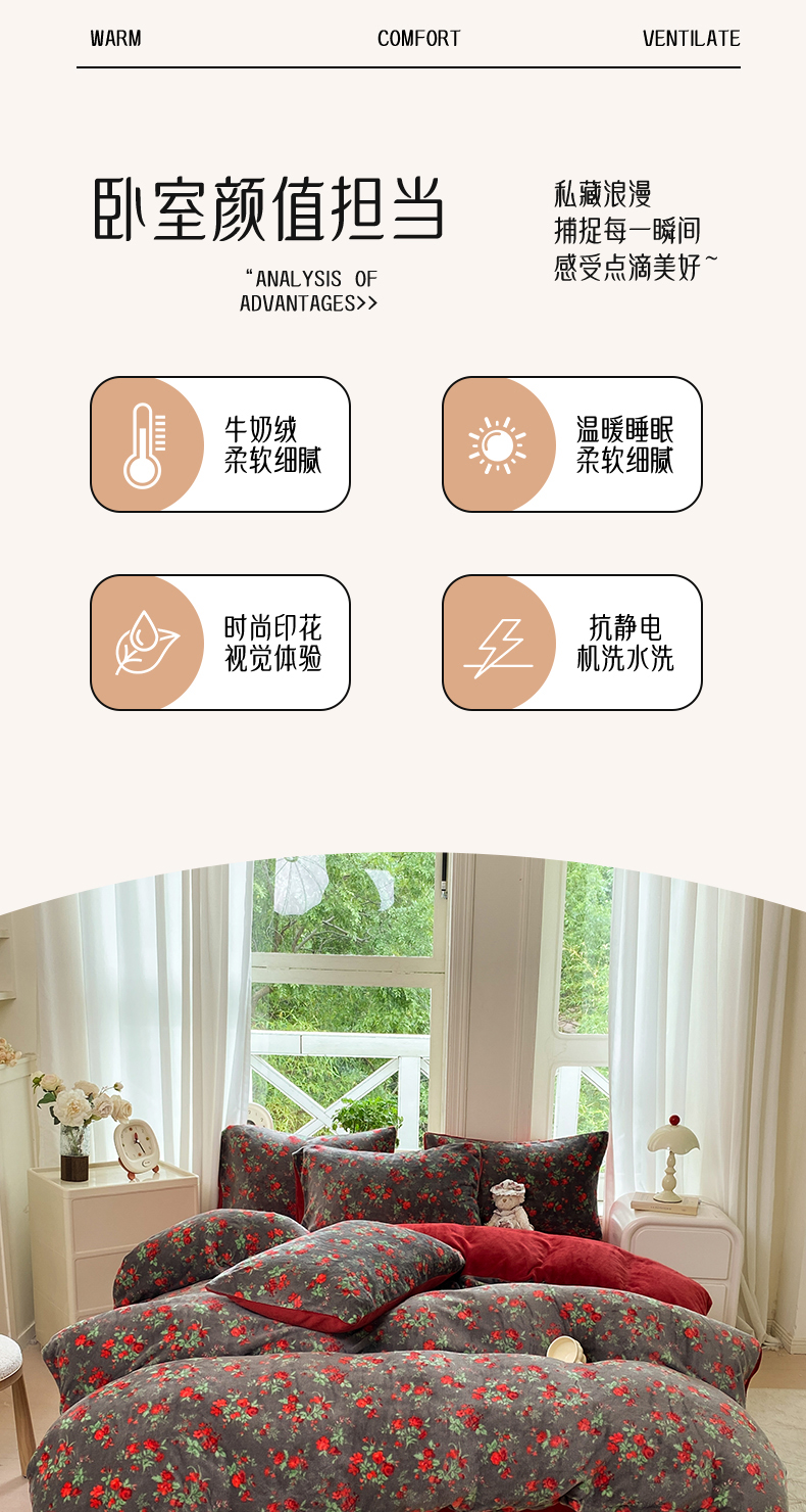 商品名称:豫见家纺 2025新款牛奶绒印花四件套 红丝带