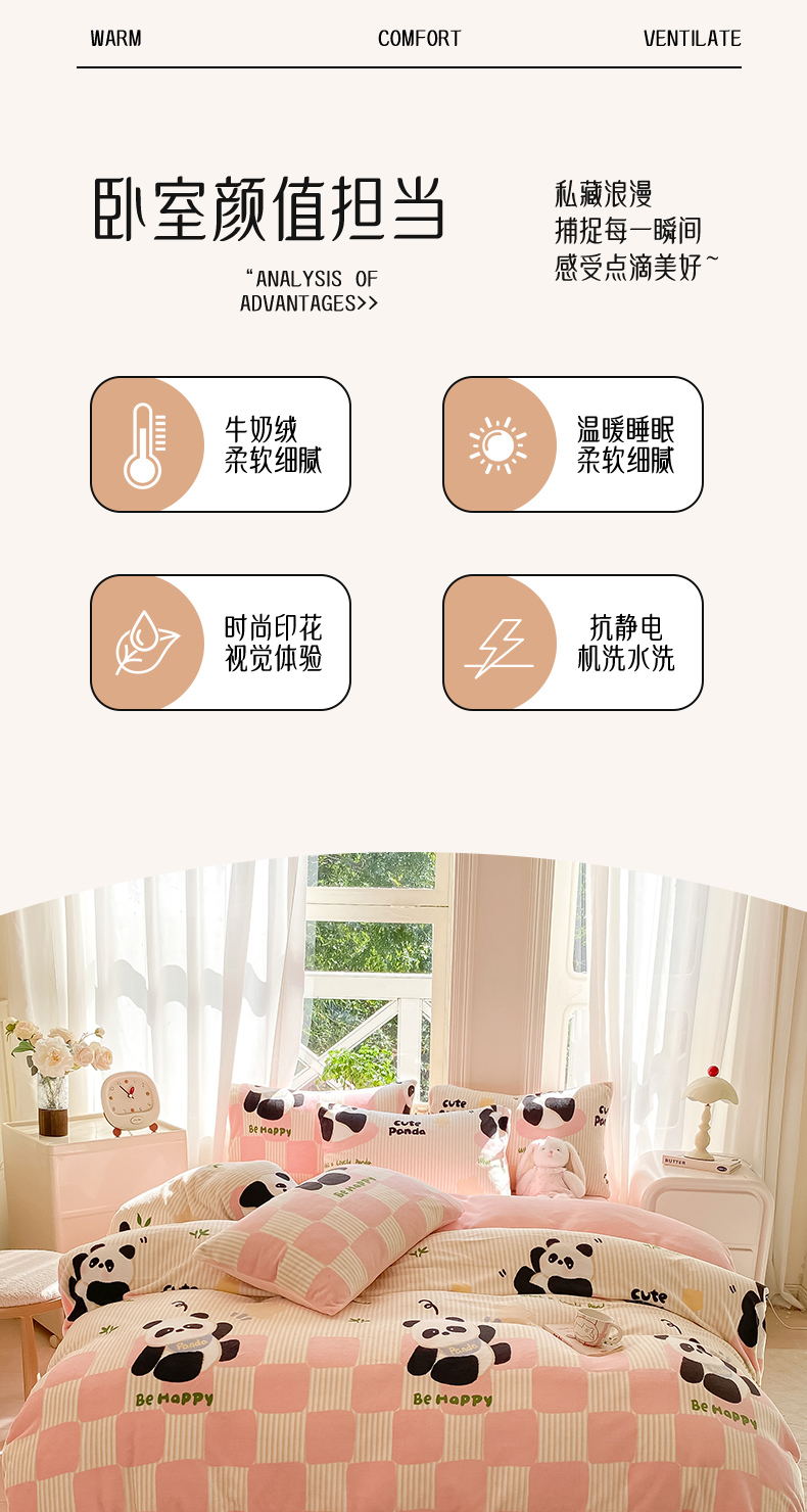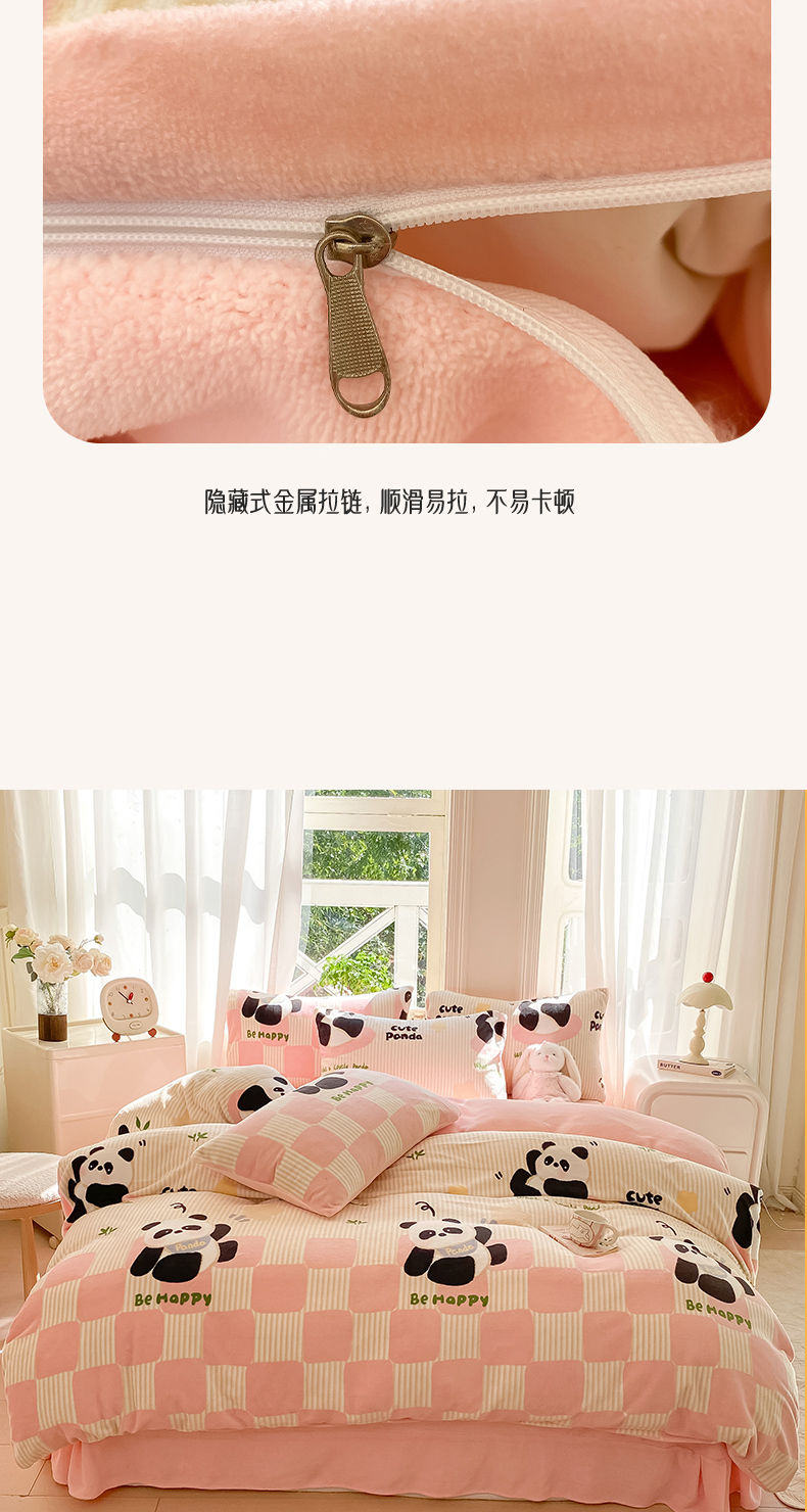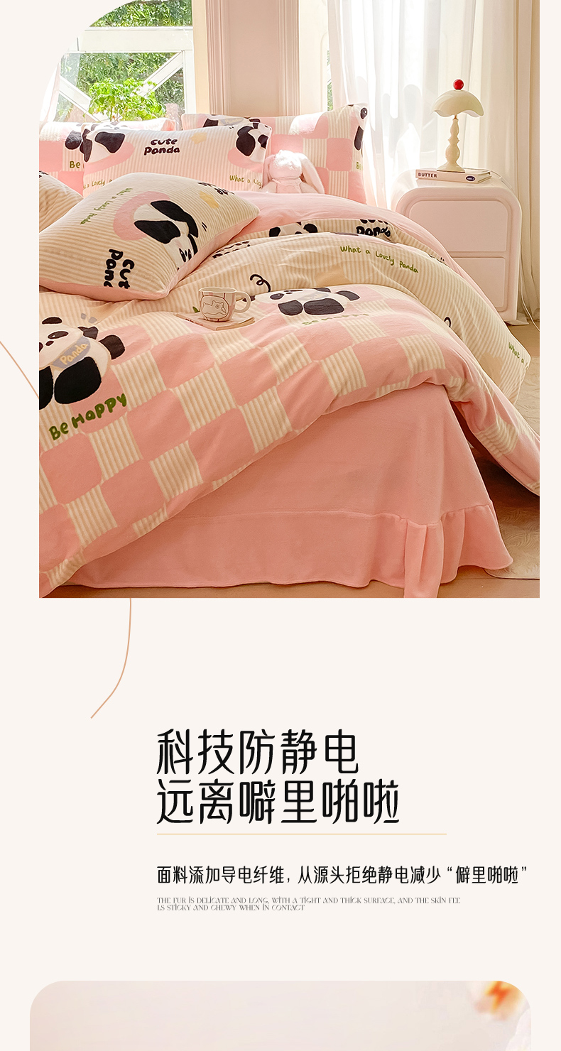 豫见家纺 2025新款牛奶绒印花四件套 熊猫乐园-粉