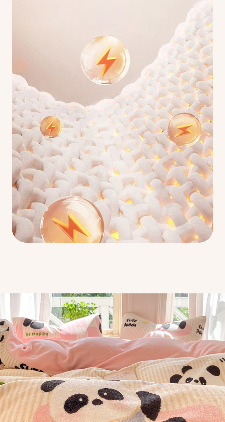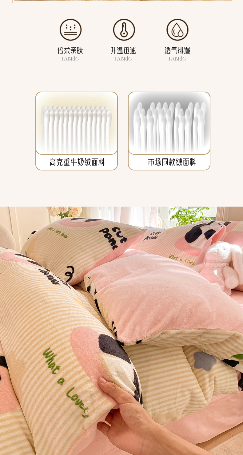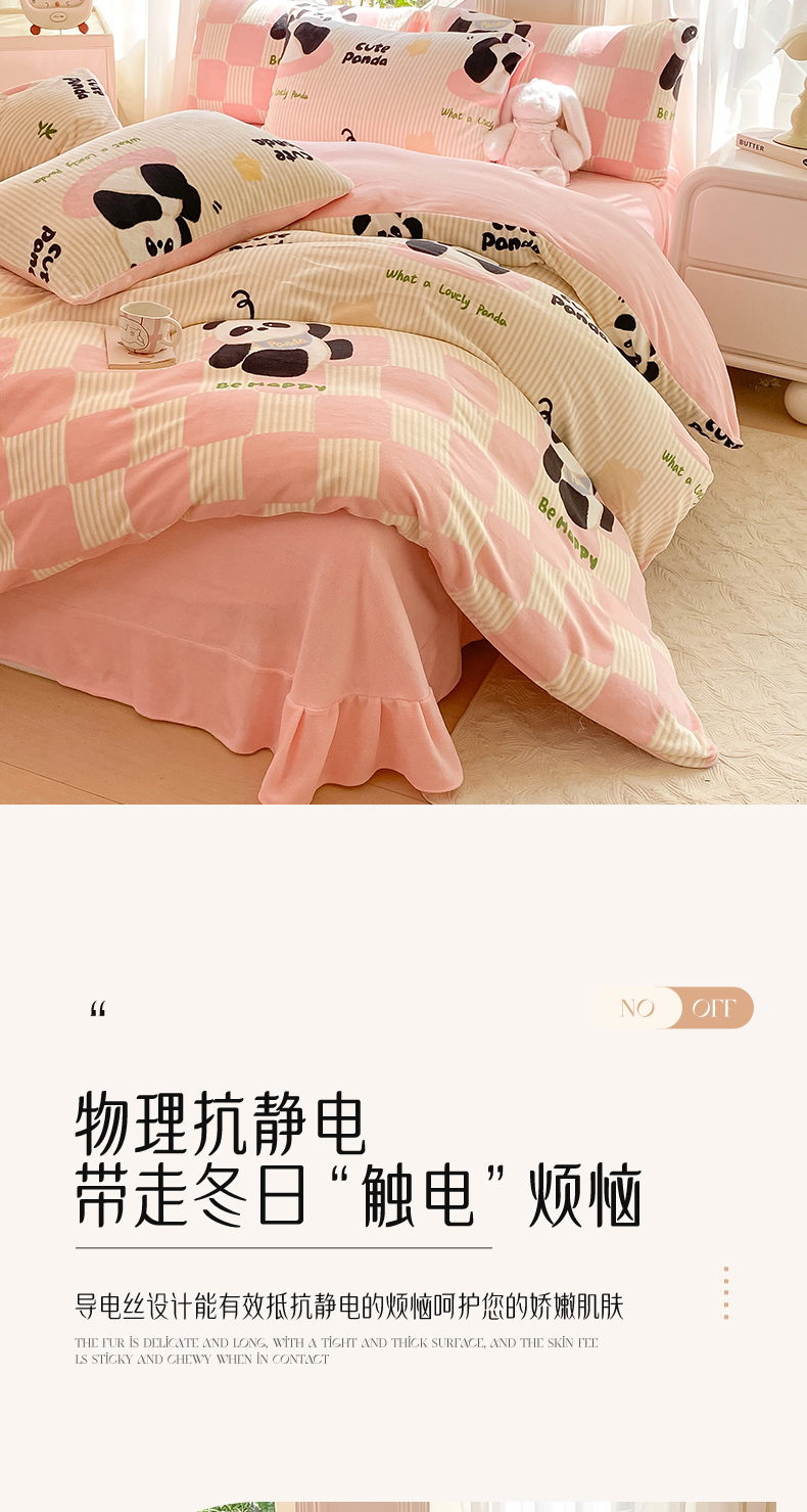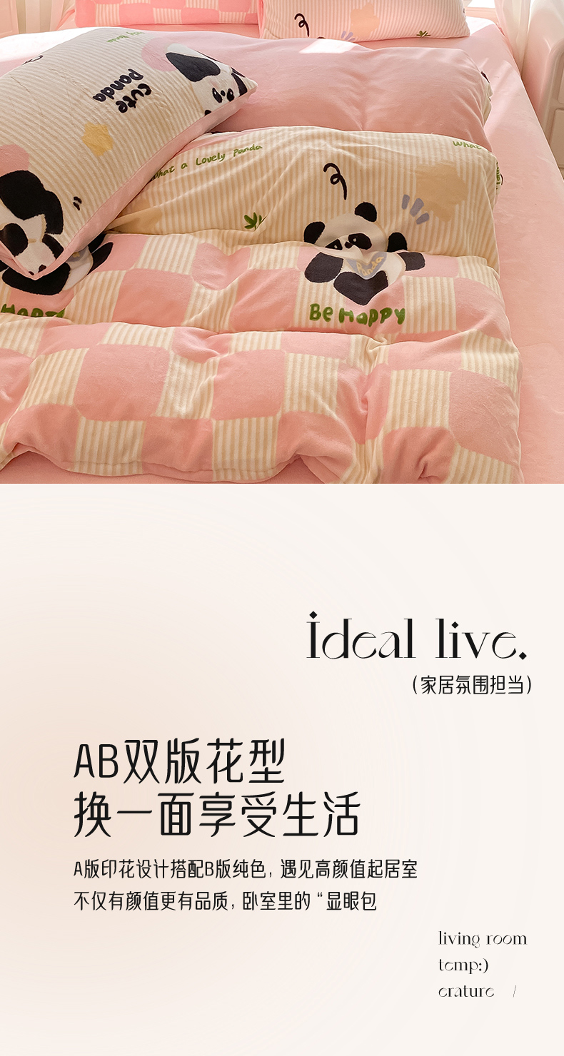 豫见家纺 2025新款牛奶绒印花四件套 熊猫乐园-粉