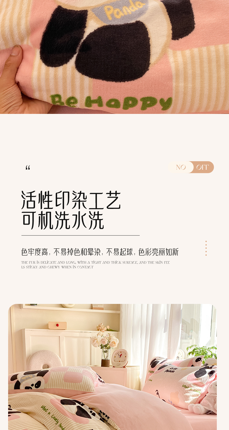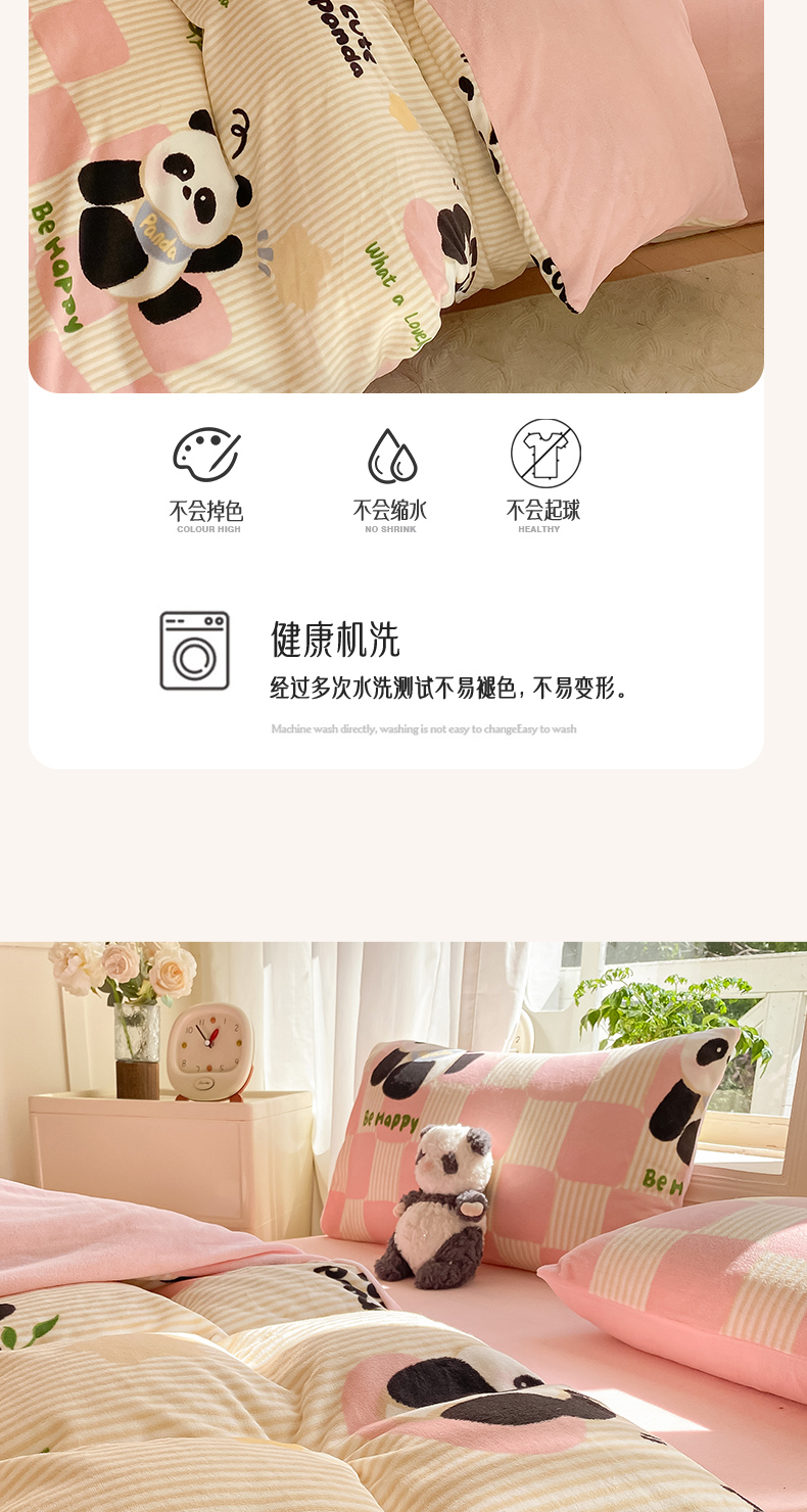 商品名称:豫见家纺 2025新款牛奶绒印花四件套 熊猫乐园-粉