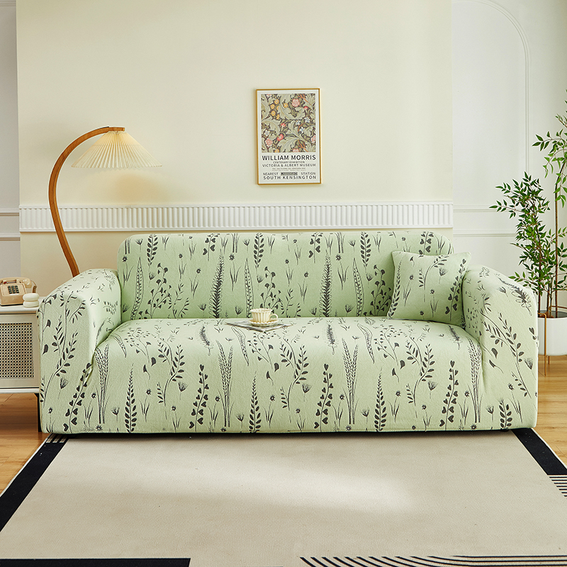 (总)丝绮鹿 2025新款仿麻雪尼尔松紧款沙发套-流景(贵妃图),流景-薄雾黄,流景-宝石绿,流景-黑棕色,流景-落日橘,流景-星空灰