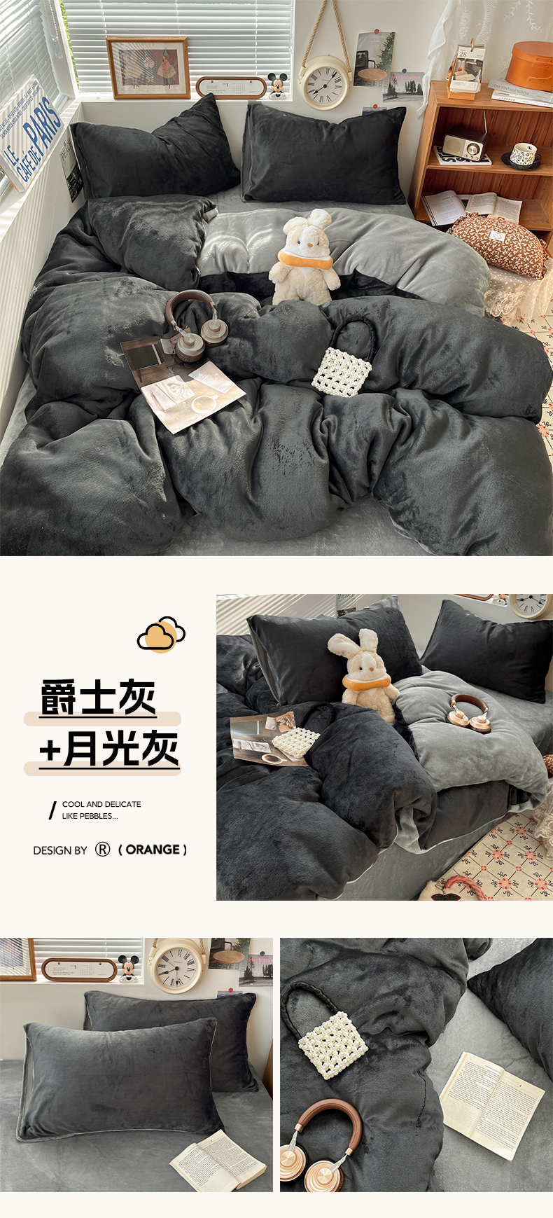 当前位置: 91家纺网 > 商品网购 > 床品套件 > 四件套 > 牛奶绒四件套 > 优承佳 2025新款高克重纯色双拼牛奶绒四件套系列 爵士灰+月光灰