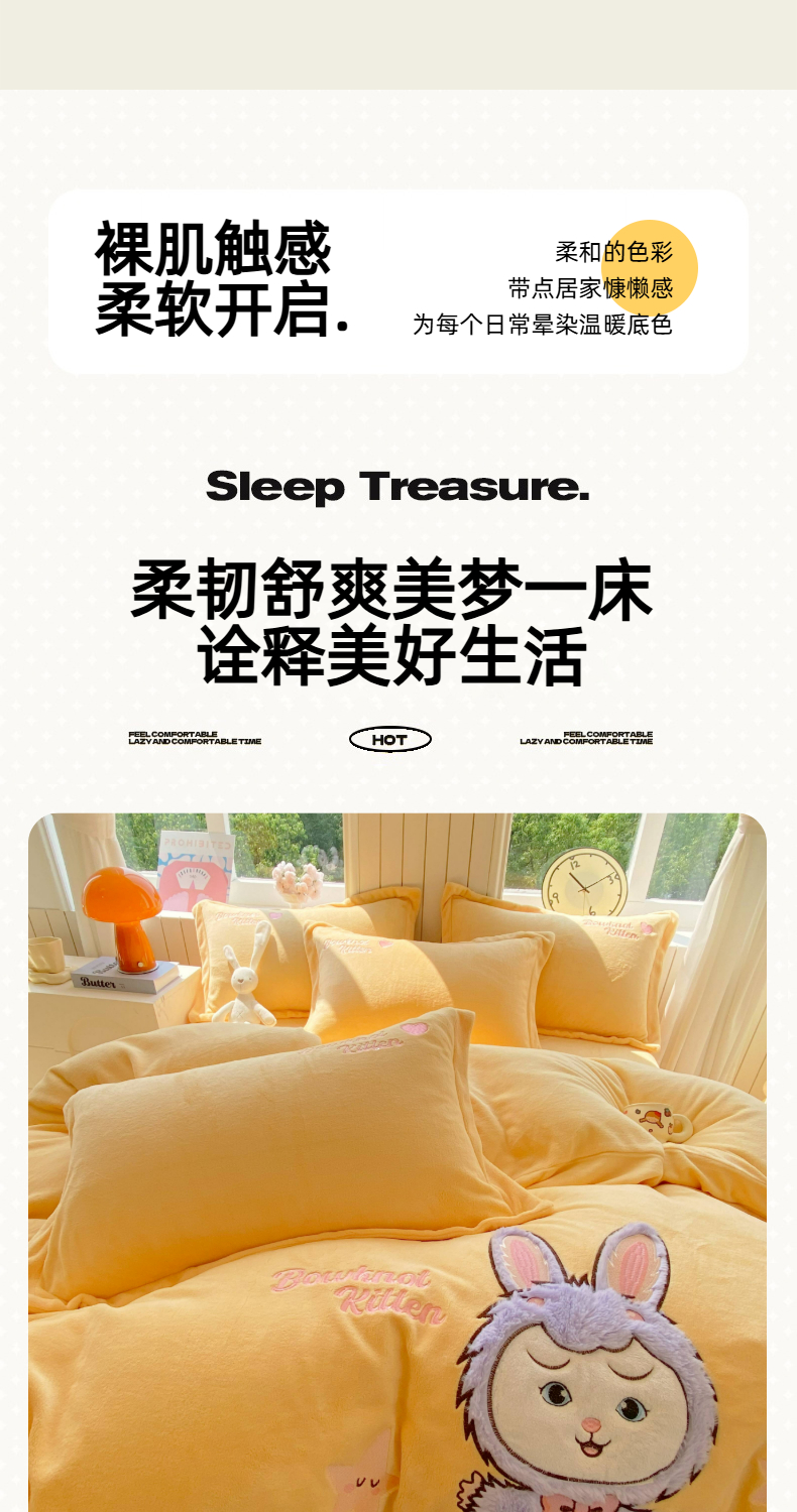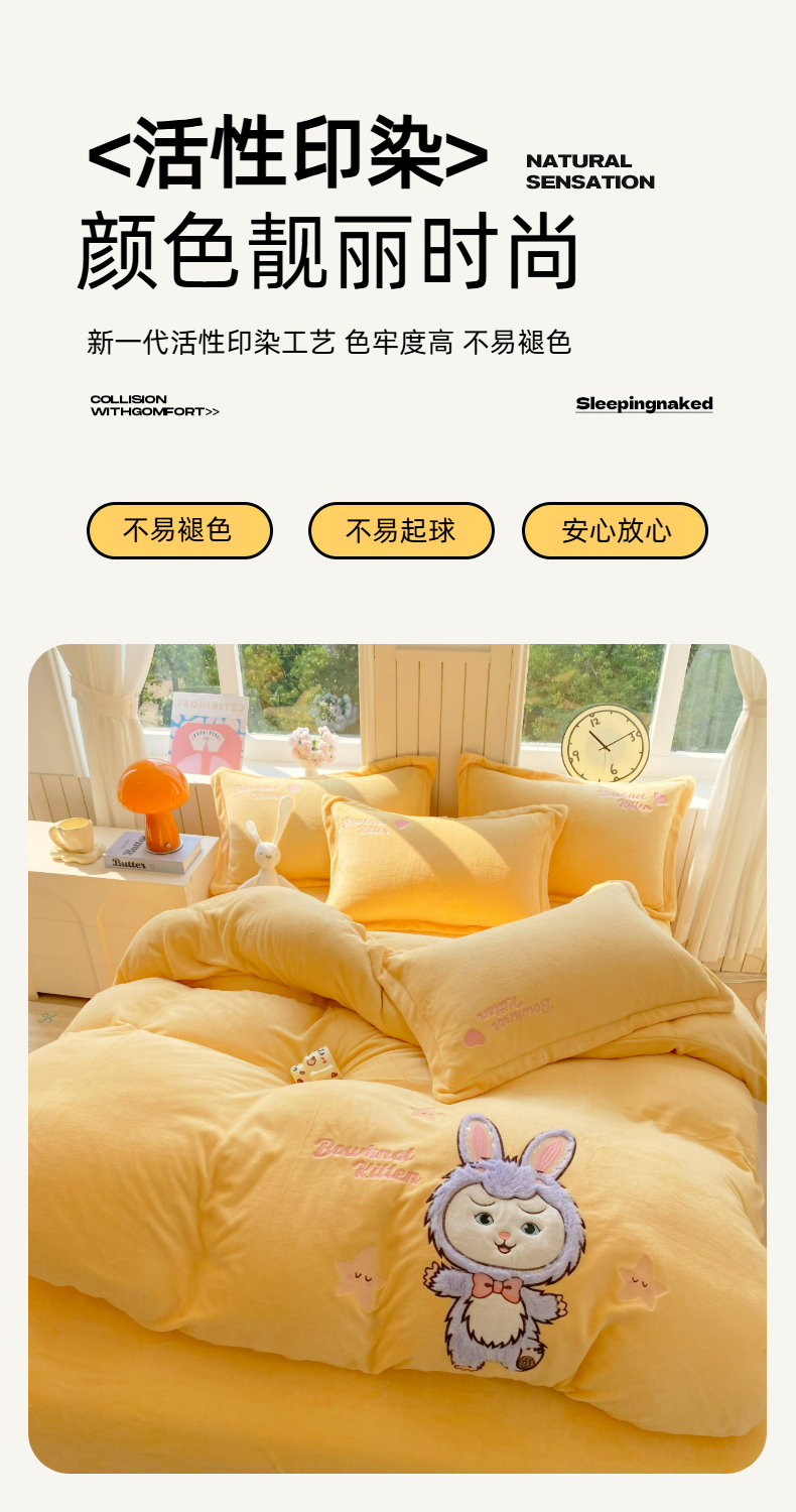 当前位置: 91家纺网 > 商品网购 > 床品套件 > 四件套 > 牛奶绒四件套 > 悦织湾家纺 2025新款牛奶绒四件套纯色贴布绣床单款床盖款床上用品四件套时尚小兔2025新款加厚 床单款时尚小兔-黄
