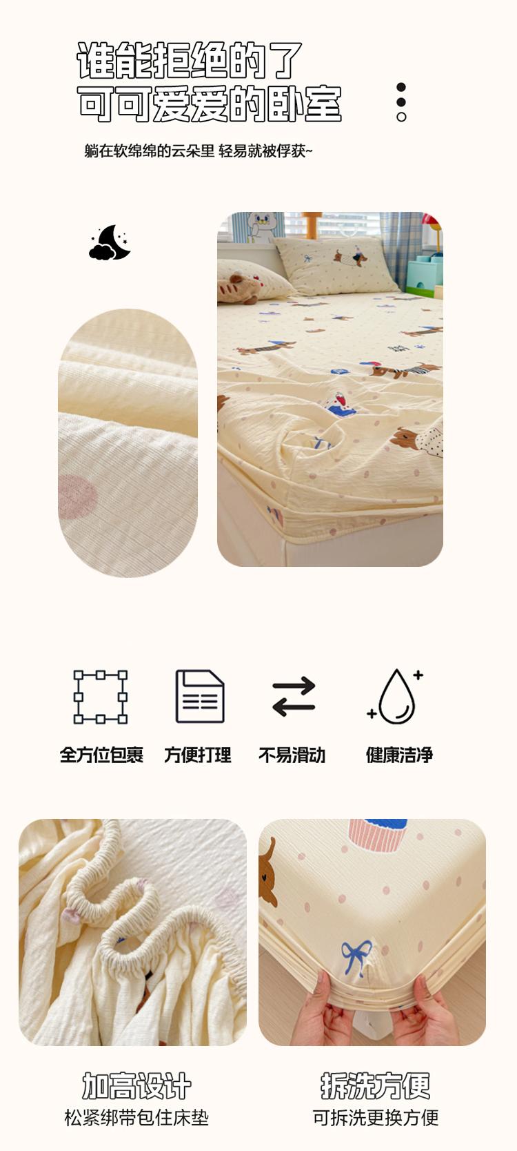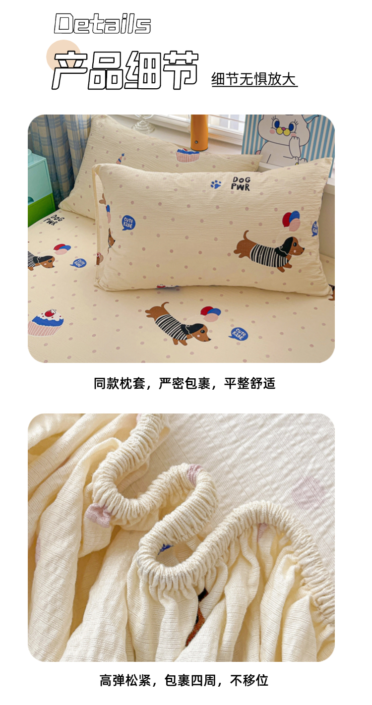 商品名称:维娜斯家纺 2025新款A类水洗棉双层纱床笠单件 欢度节日