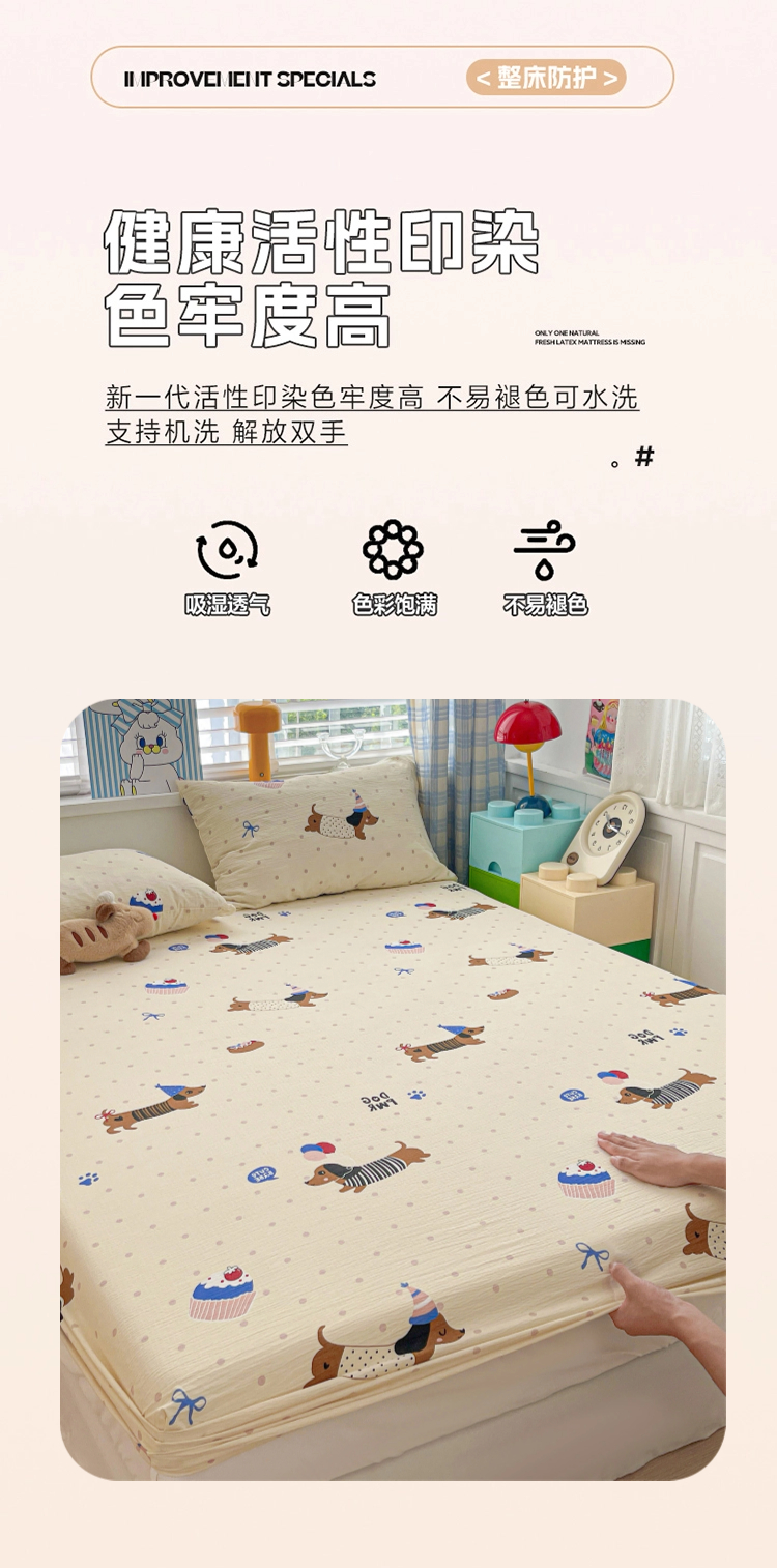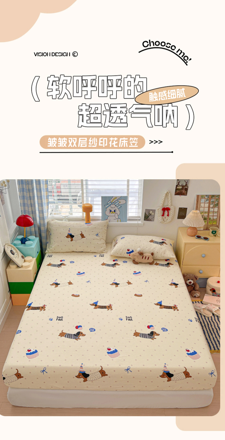 维娜斯家纺 2025新款A类水洗棉双层纱床笠单件 欢度节日