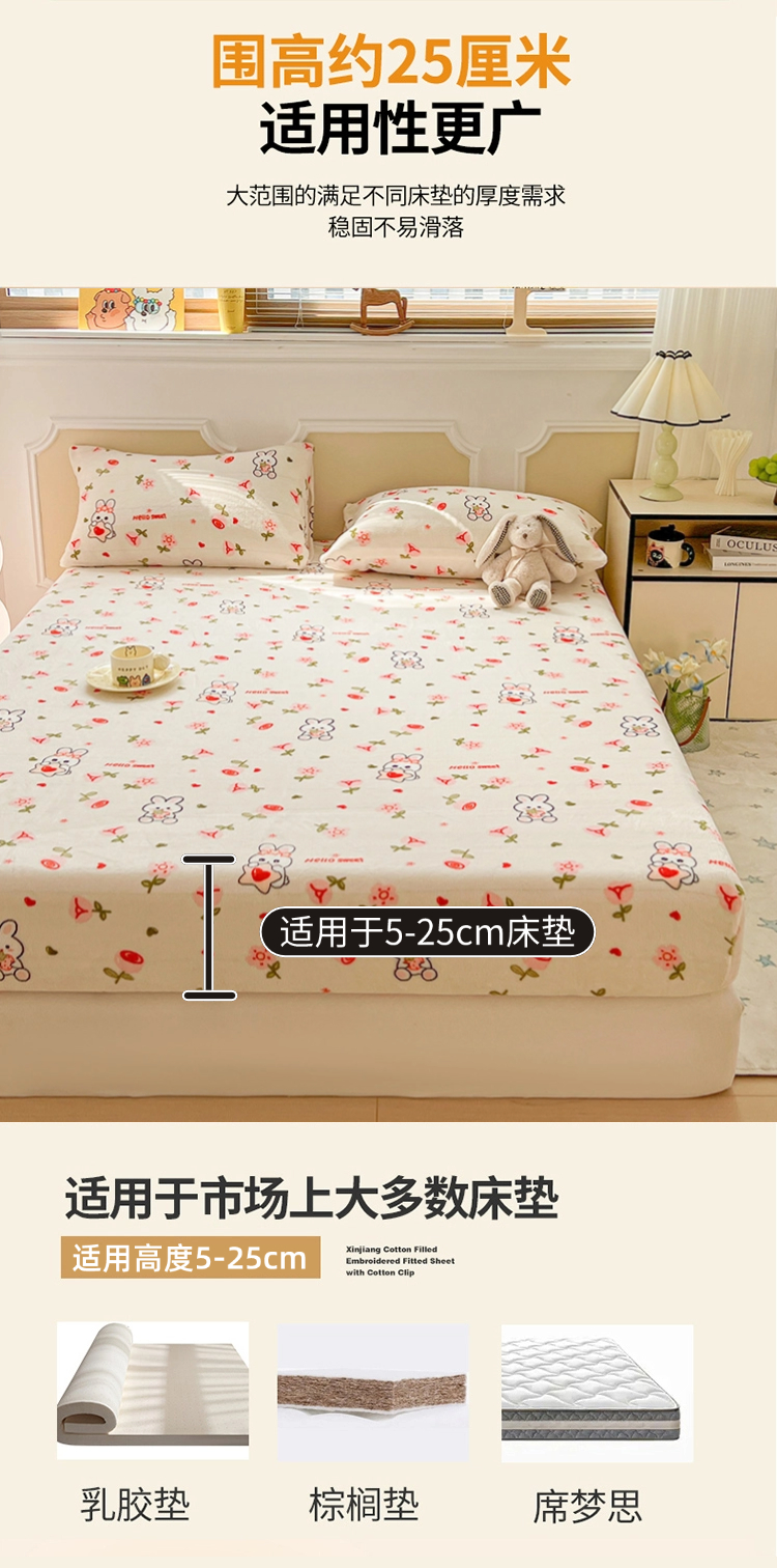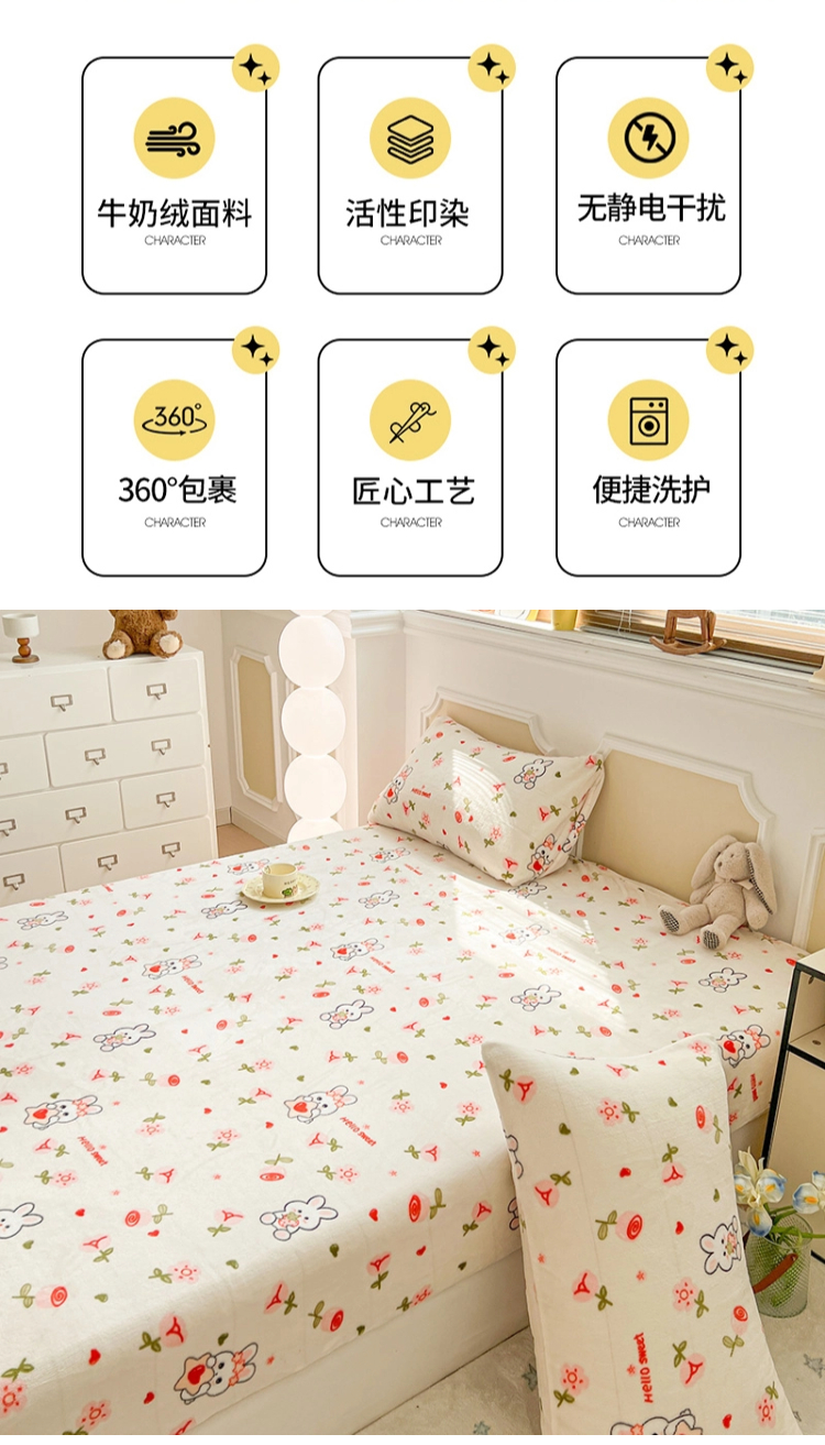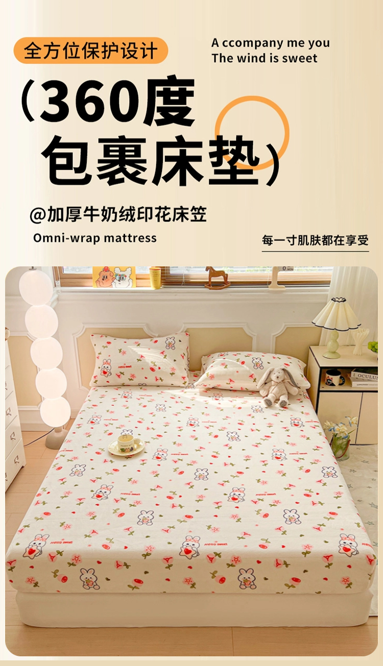 (总)维娜斯家纺 2025新款卡通牛奶绒印花床笠单件,草莓酱,花语岚山,欢度节日,欢乐猫咪,可爱猫咪,魅力小熊,萌萌哈奇,青柠薄荷,仙草,小熊梦梦