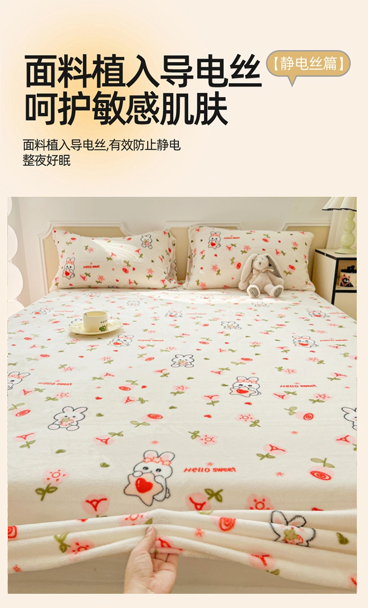 180*200牛奶绒印花床笠