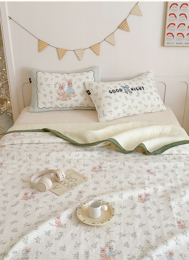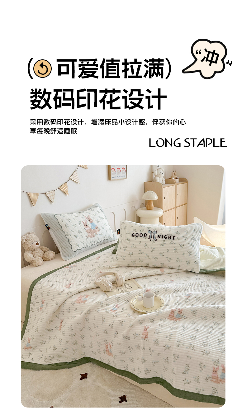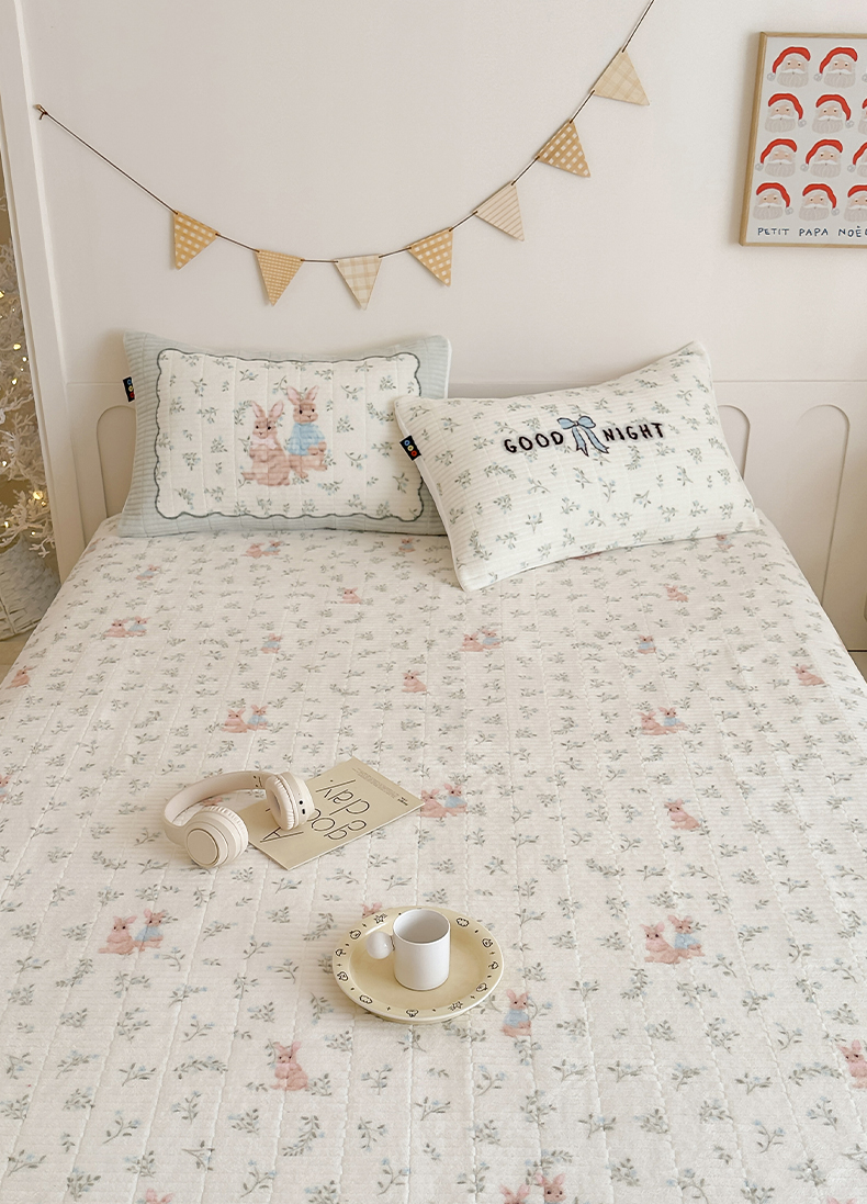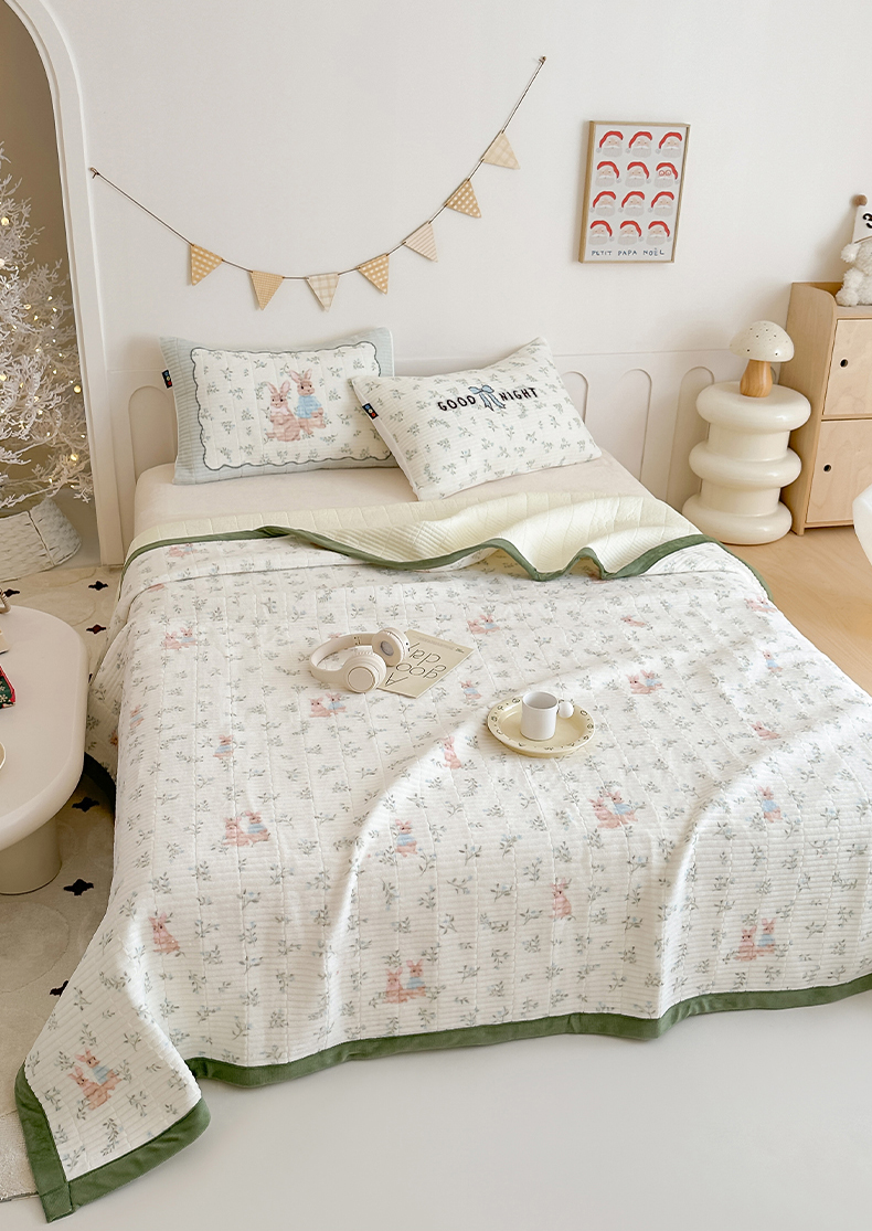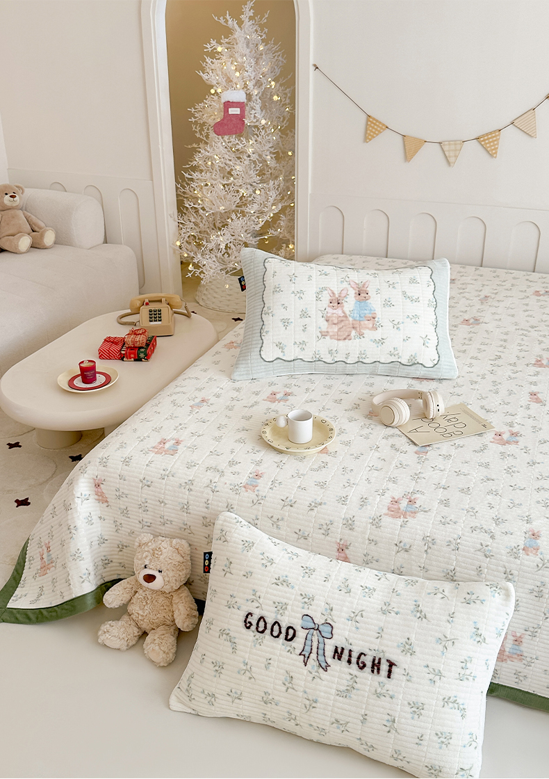 商品名称:RYB红黄兰 2025新款设计师原创数码印花牛奶绒夹棉床盖三件套 森林兔子