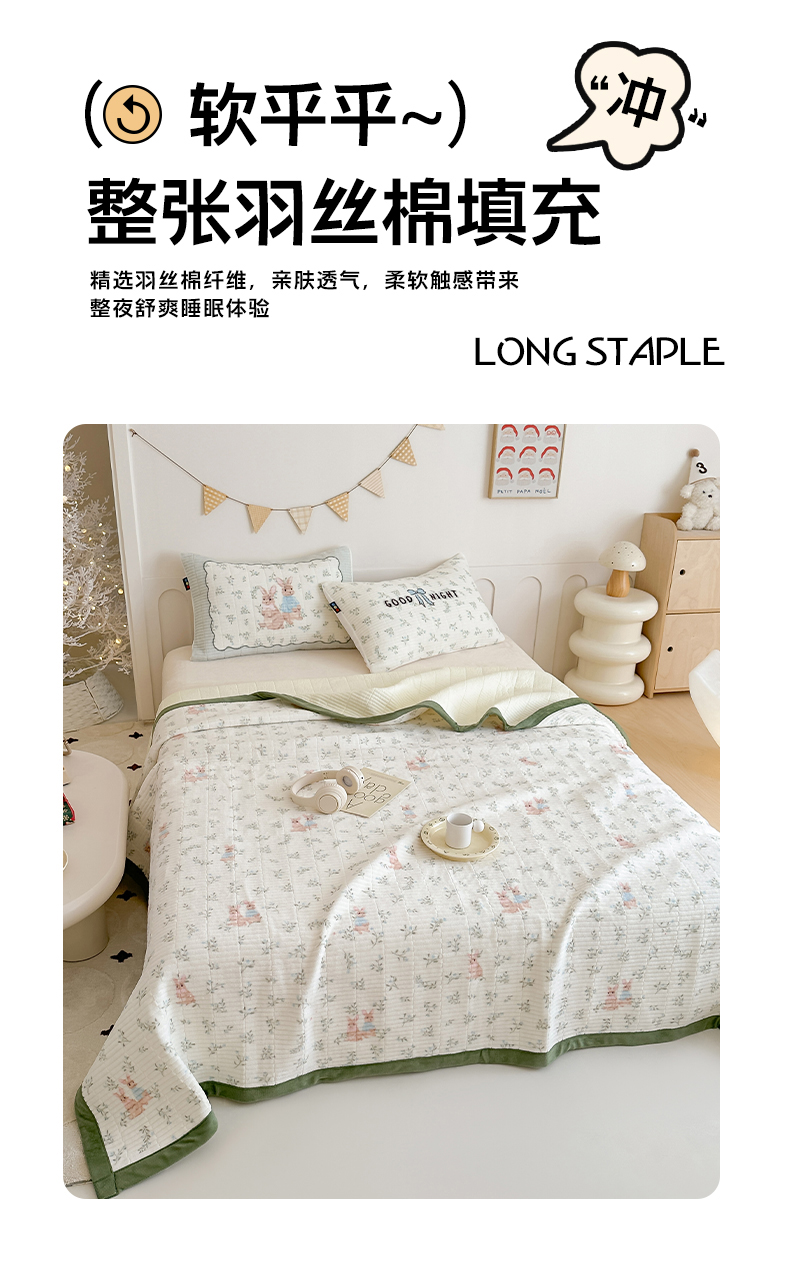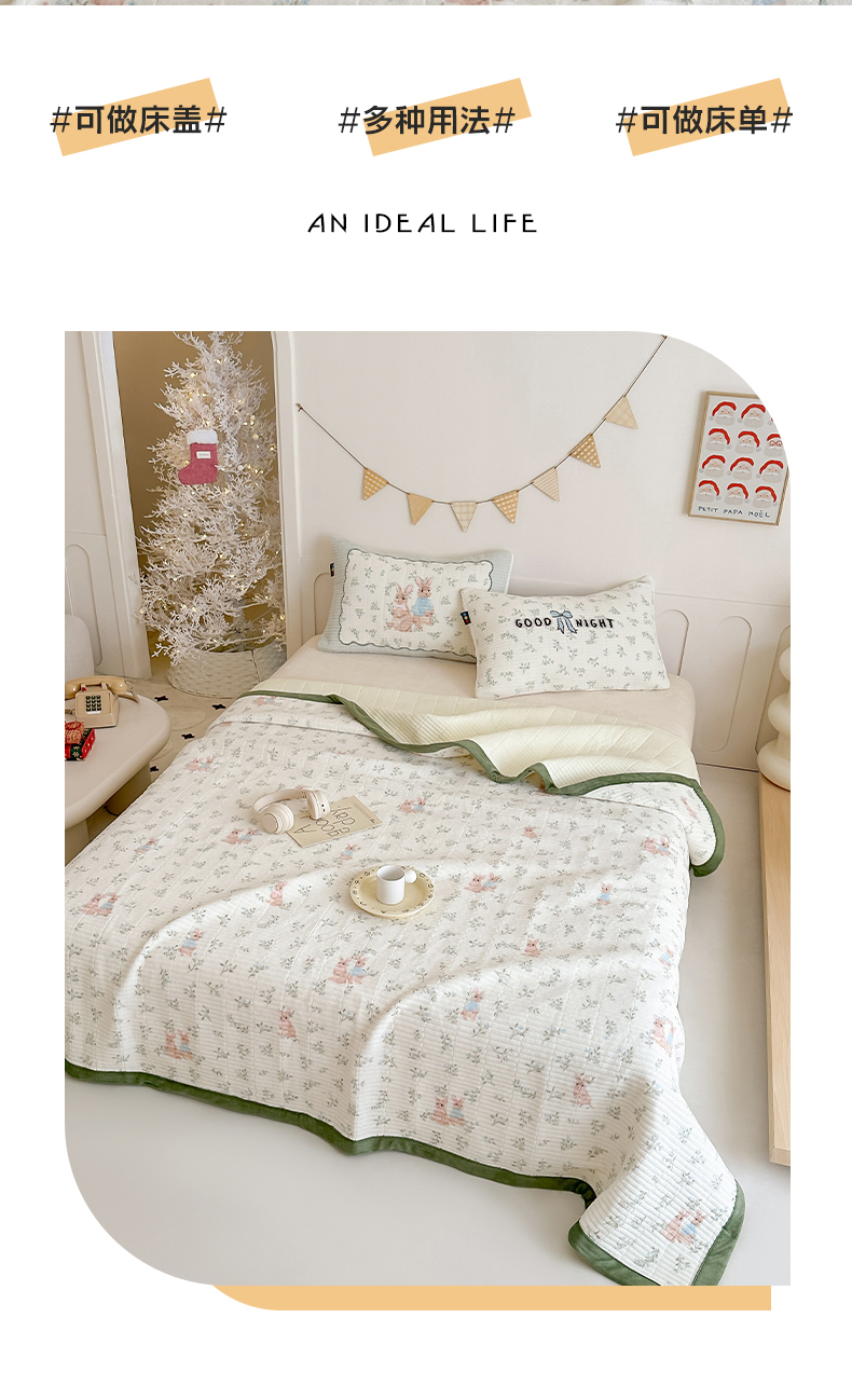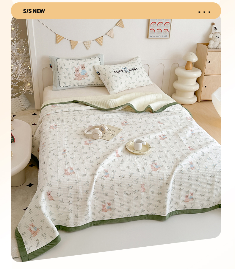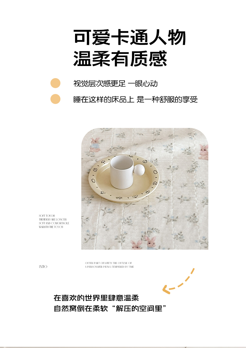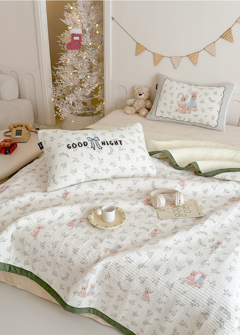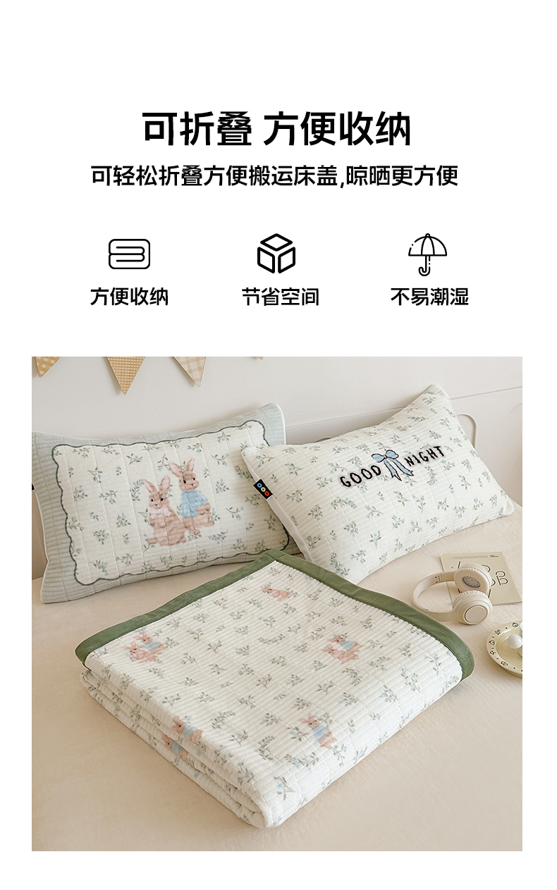 商品名称:RYB红黄兰 2025新款设计师原创数码印花牛奶绒夹棉床盖三件套 森林兔子