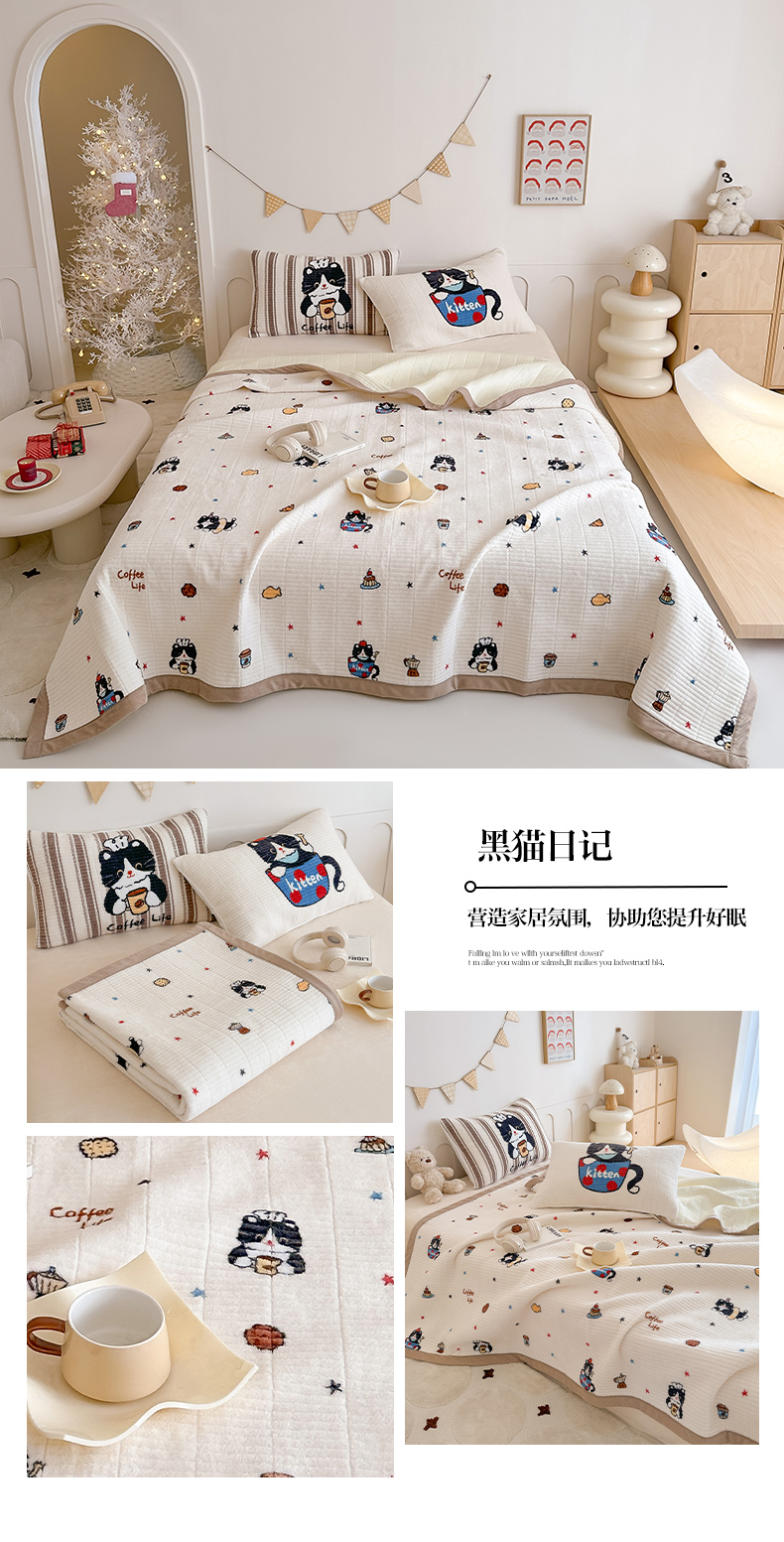 (总)RYB红黄兰 2025新款设计师原创数码印花牛奶绒夹棉床盖三件套,豹纹蝴蝶结,豹纹奶牛猫,黑猫日记,蓝条哈基米,魔法星星熊,奶油熊宝,森林兔子,圣诞西高地,顽皮兄弟,幸运加马,包装