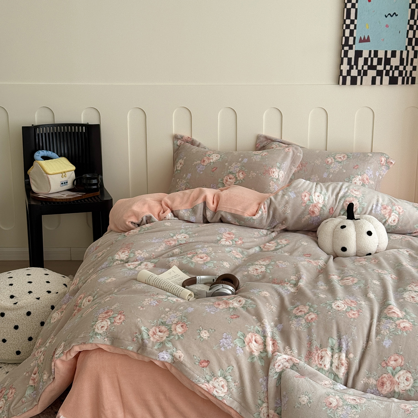 于果 2025新款牛奶绒印花四件套 快乐花园