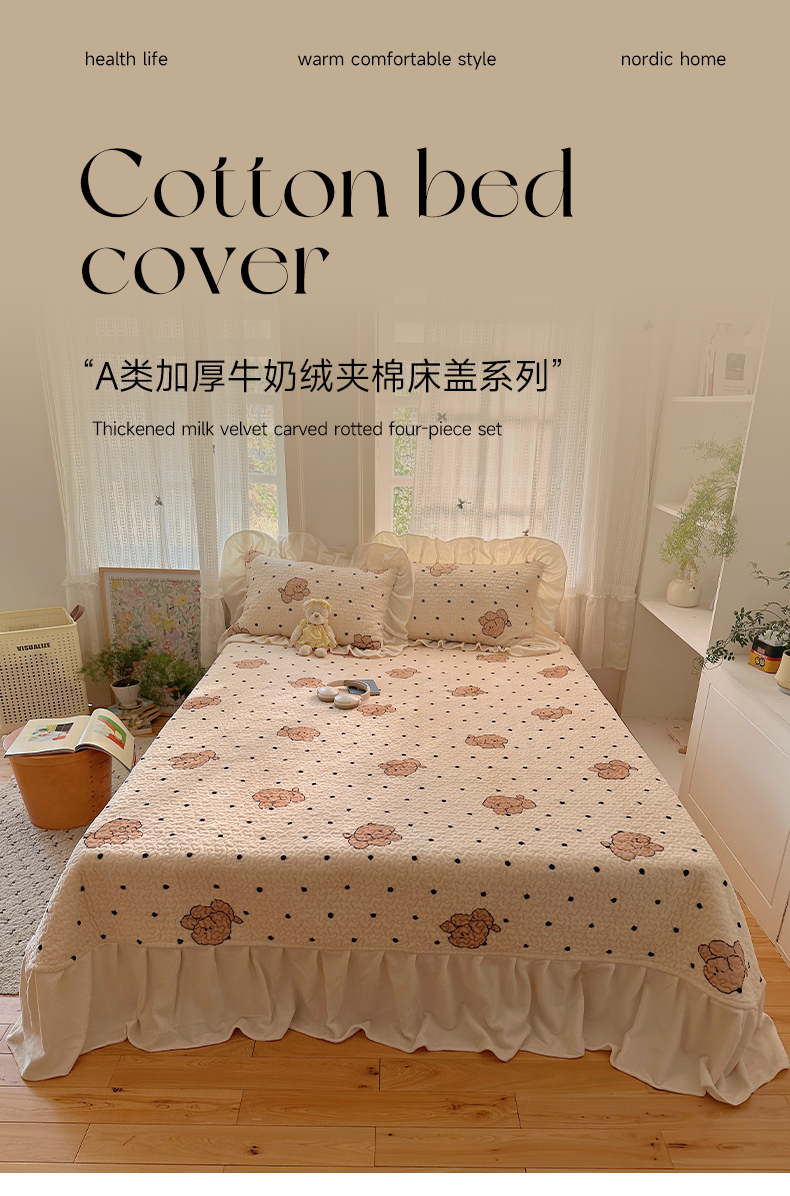 (总)红嘴企鹅 2025新款花边加厚牛奶绒单品床盖单件床盖三件套