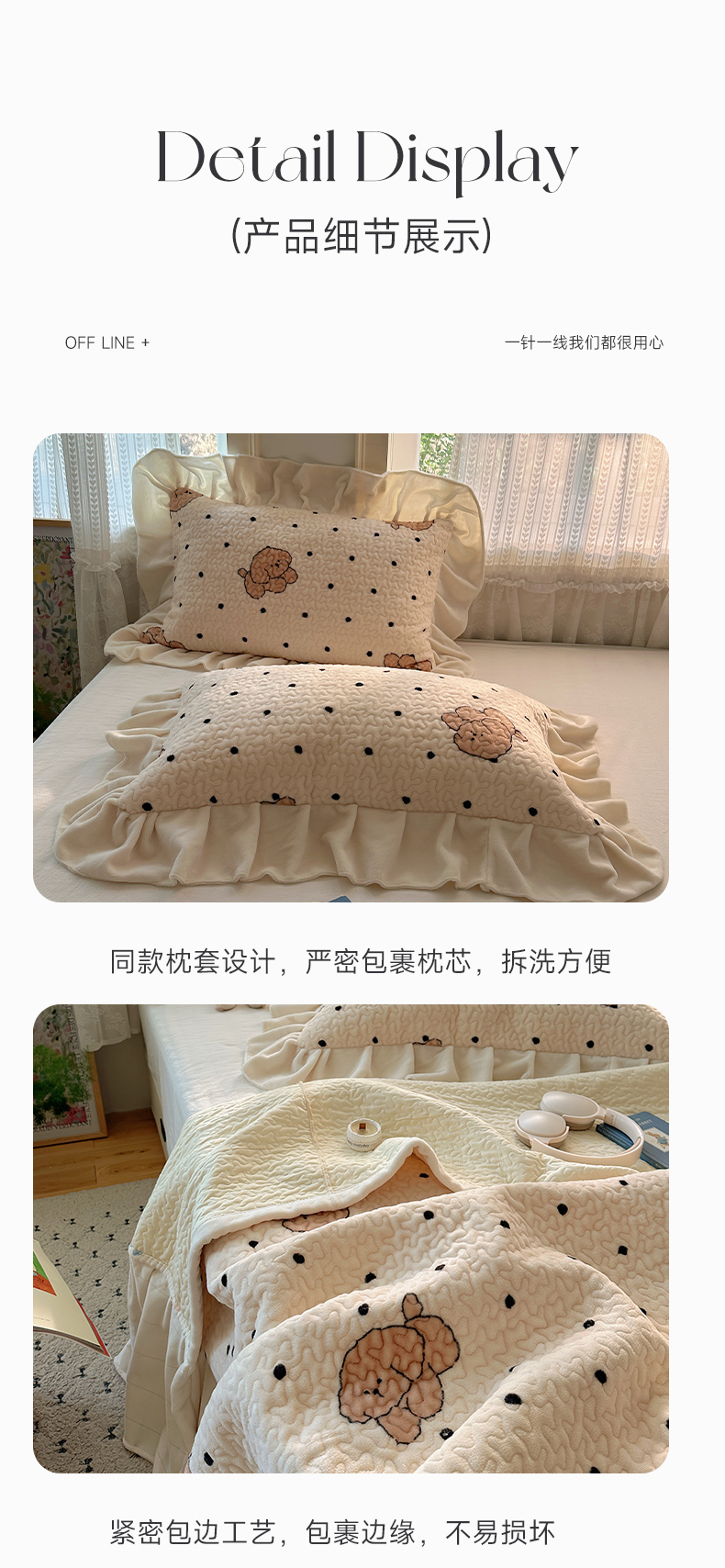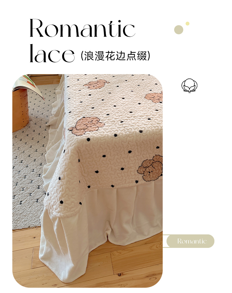 商品名称:(总)红嘴企鹅 2025新款花边加厚牛奶绒单品床盖单件床盖三件套