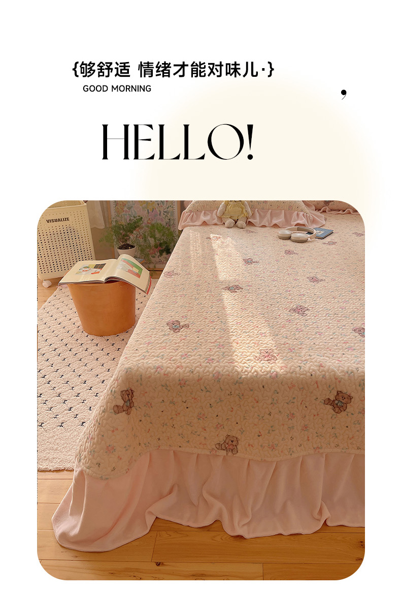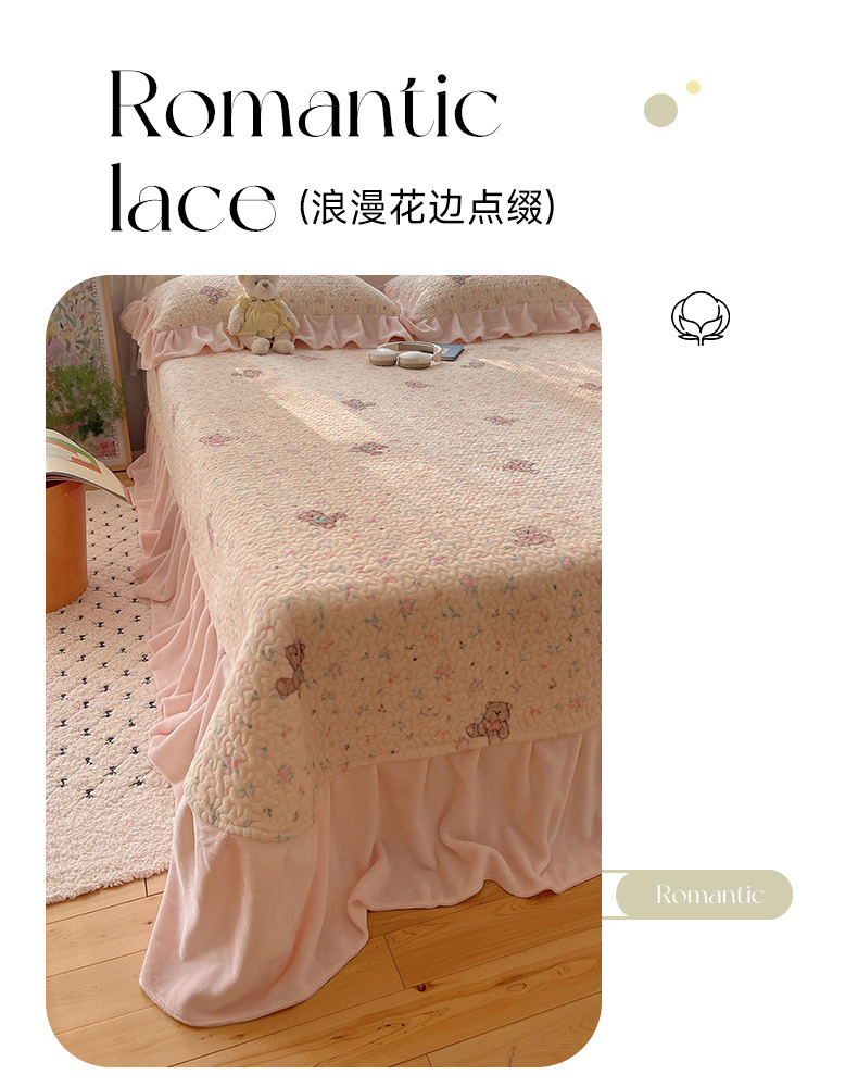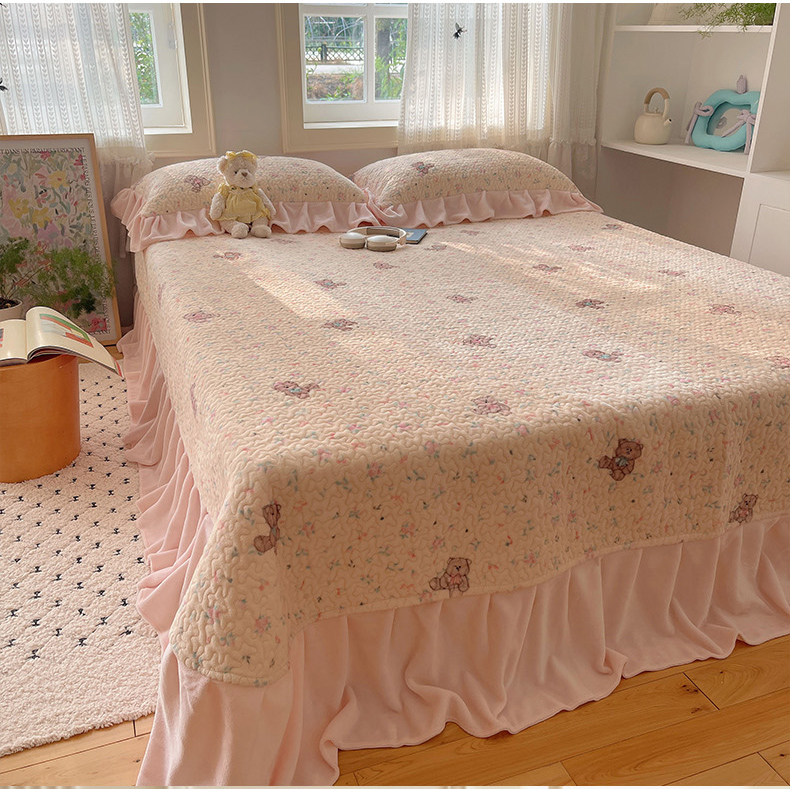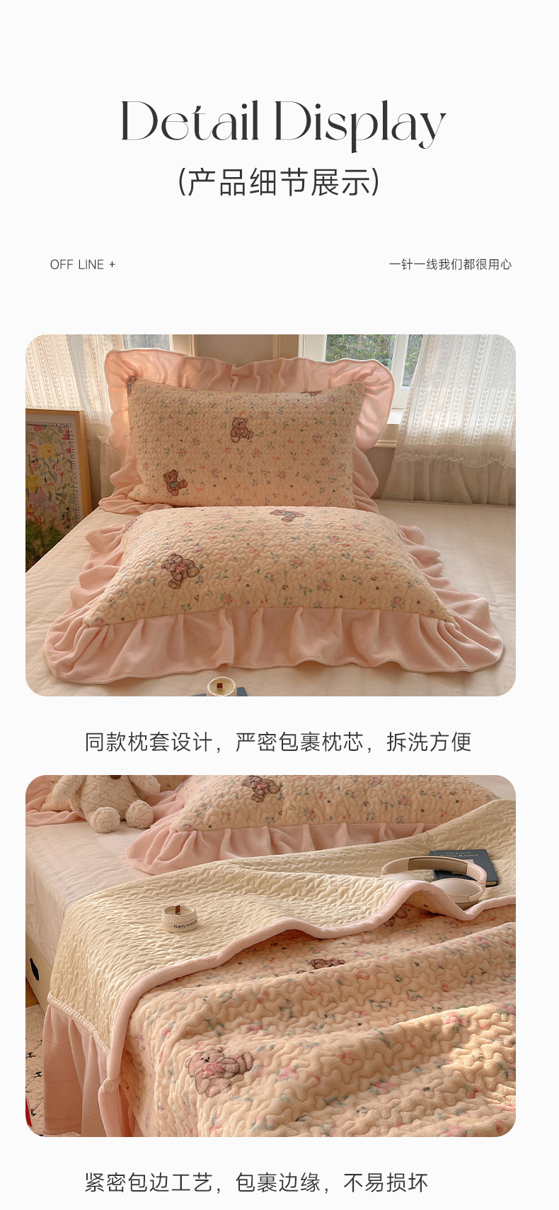红嘴企鹅 2025新款花边加厚牛奶绒单品床盖单件床盖三件套 萌萌熊