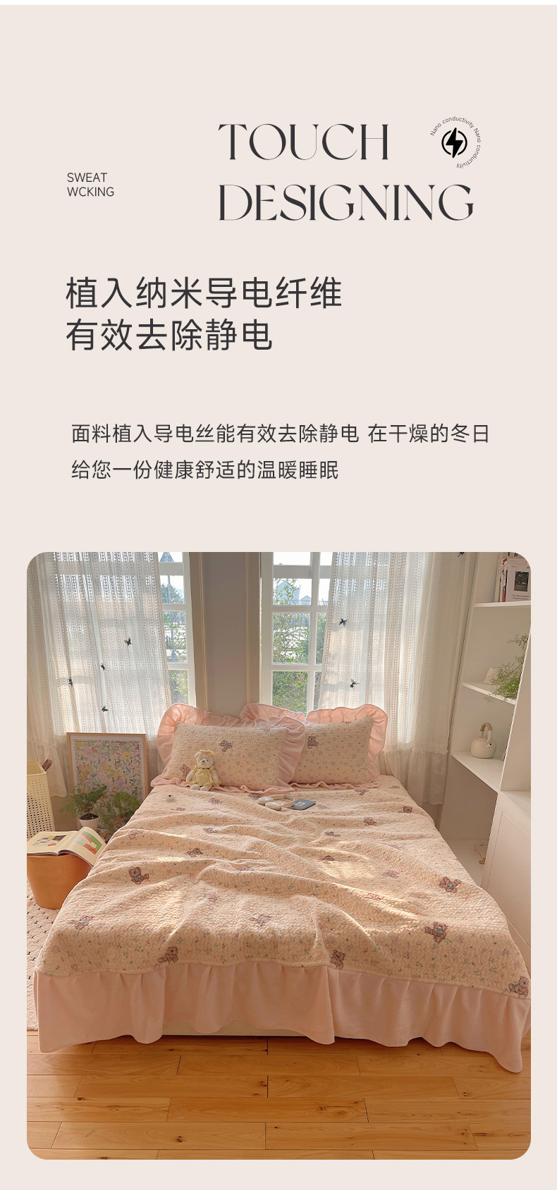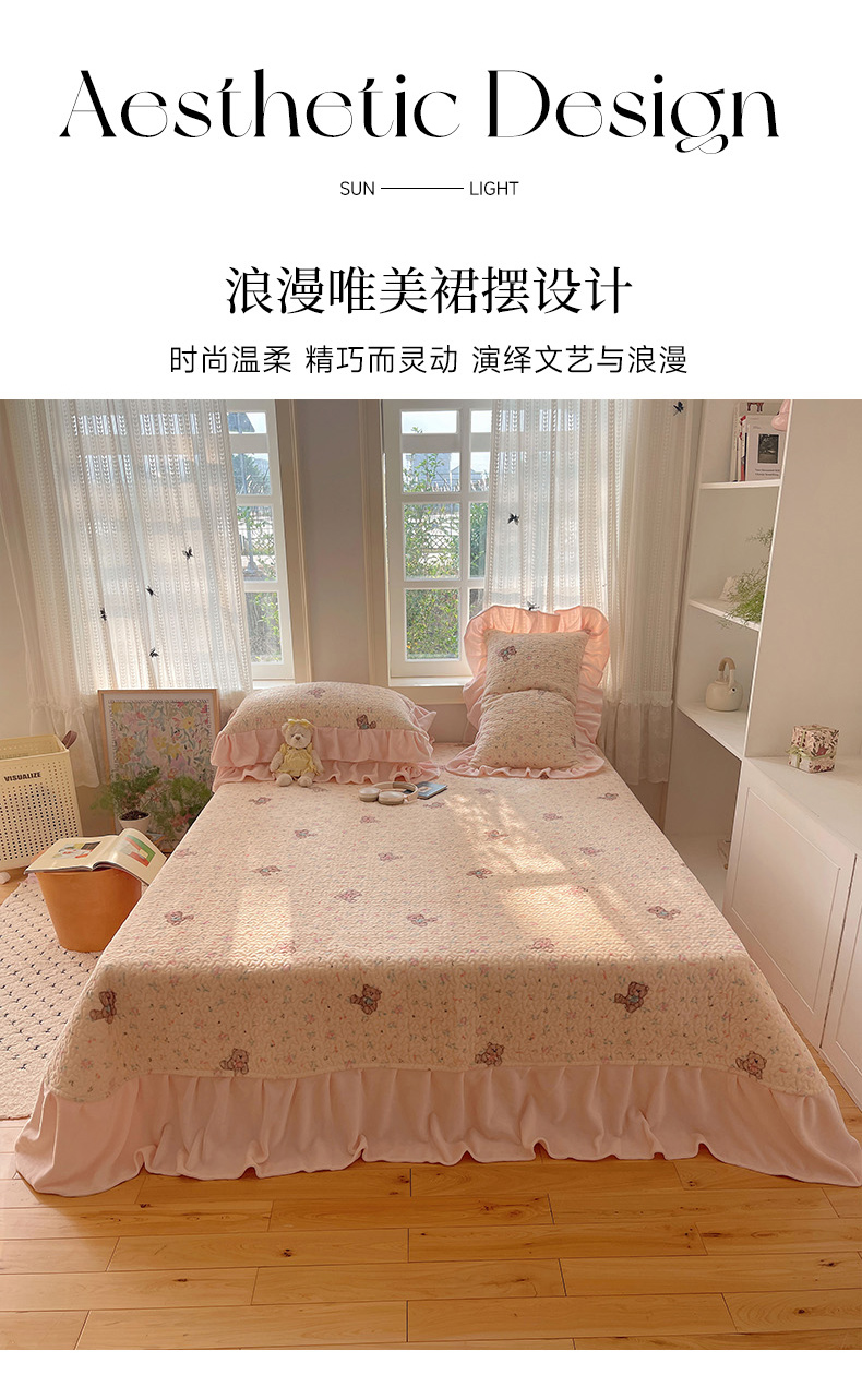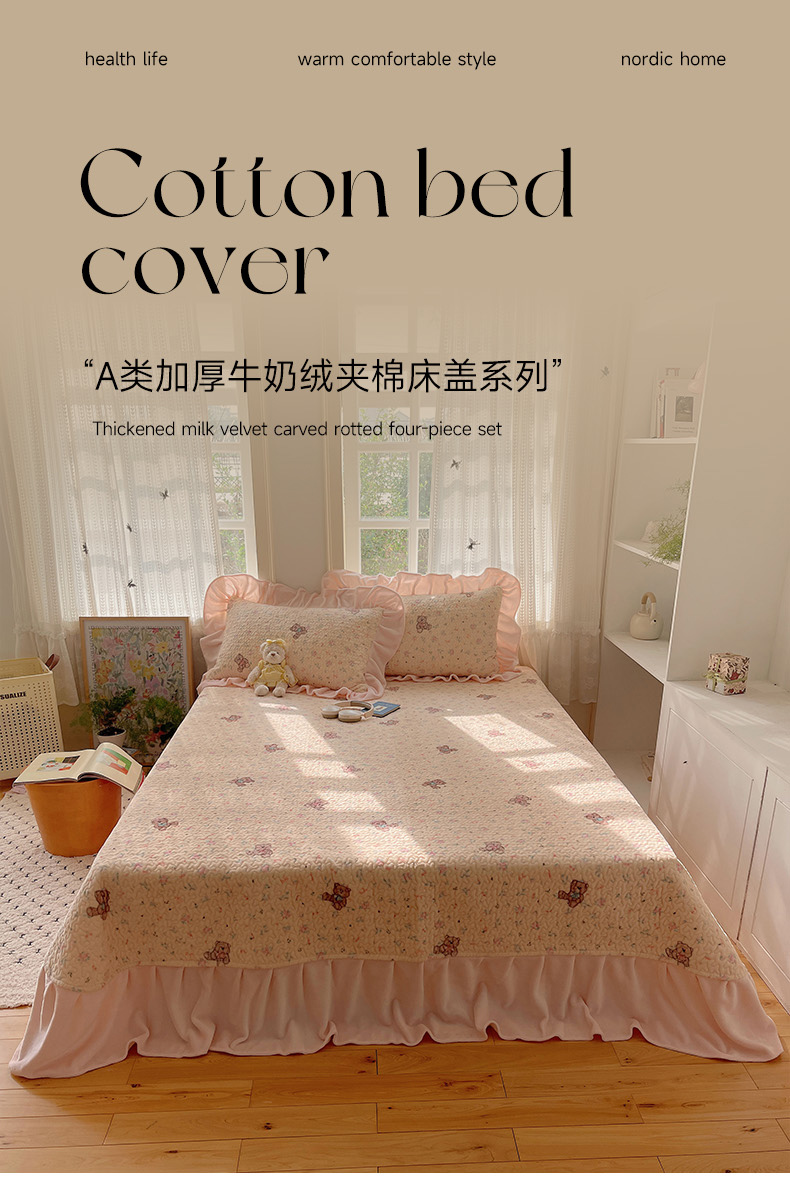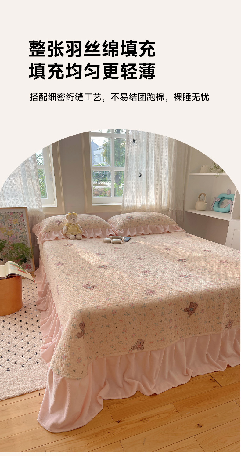 红嘴企鹅 2025新款花边加厚牛奶绒单品床盖单件床盖三件套 萌萌熊