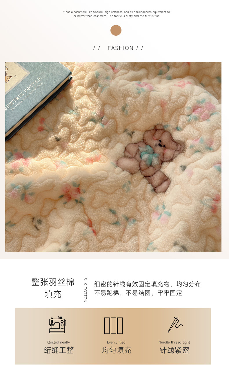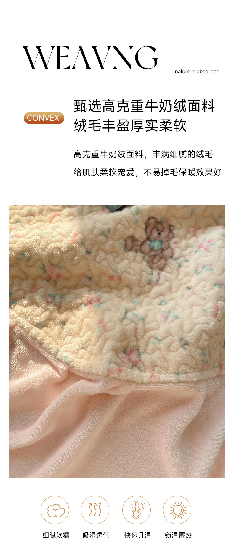 商品名称:红嘴企鹅 2025新款花边加厚牛奶绒单品床盖单件床盖三件套 萌萌熊