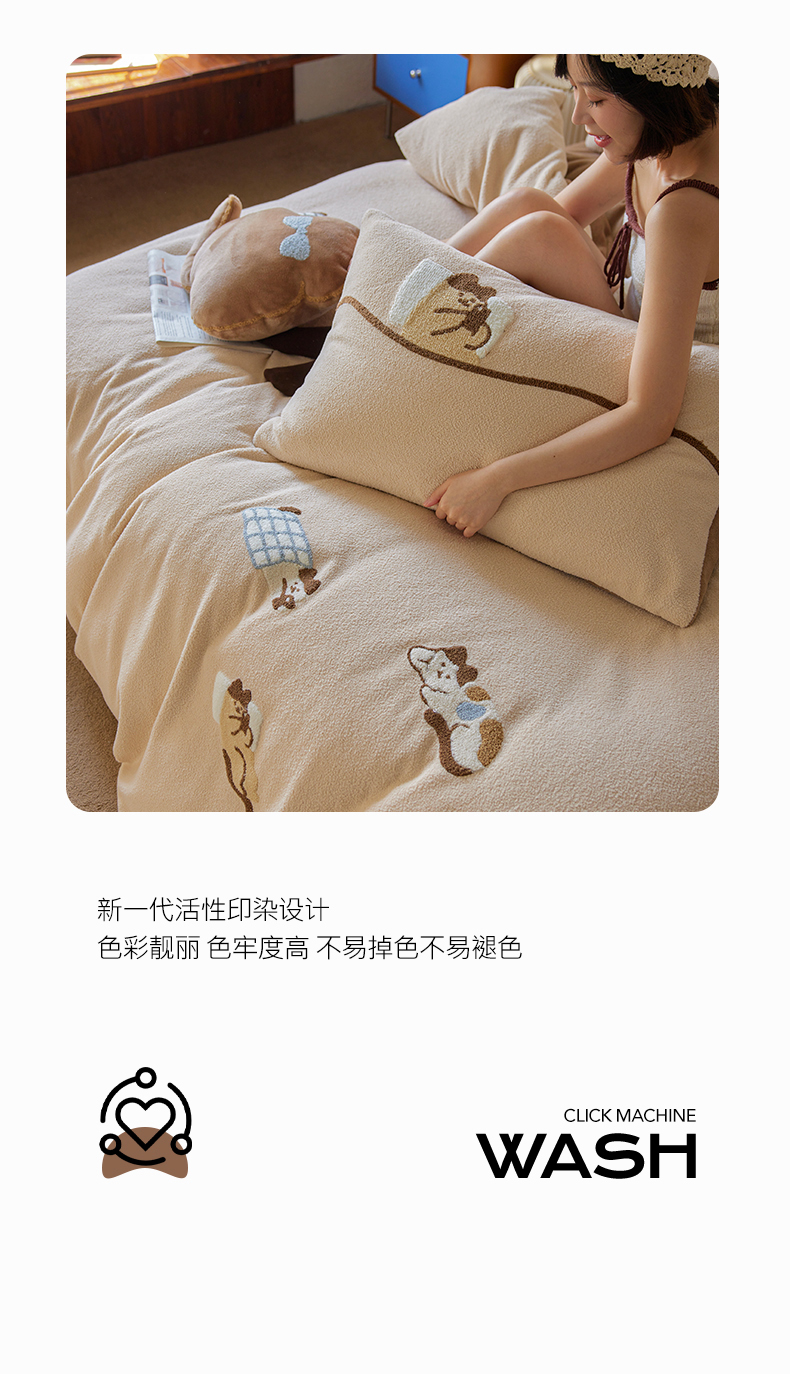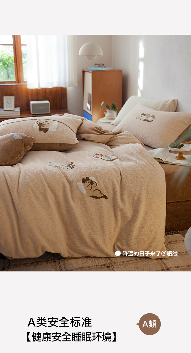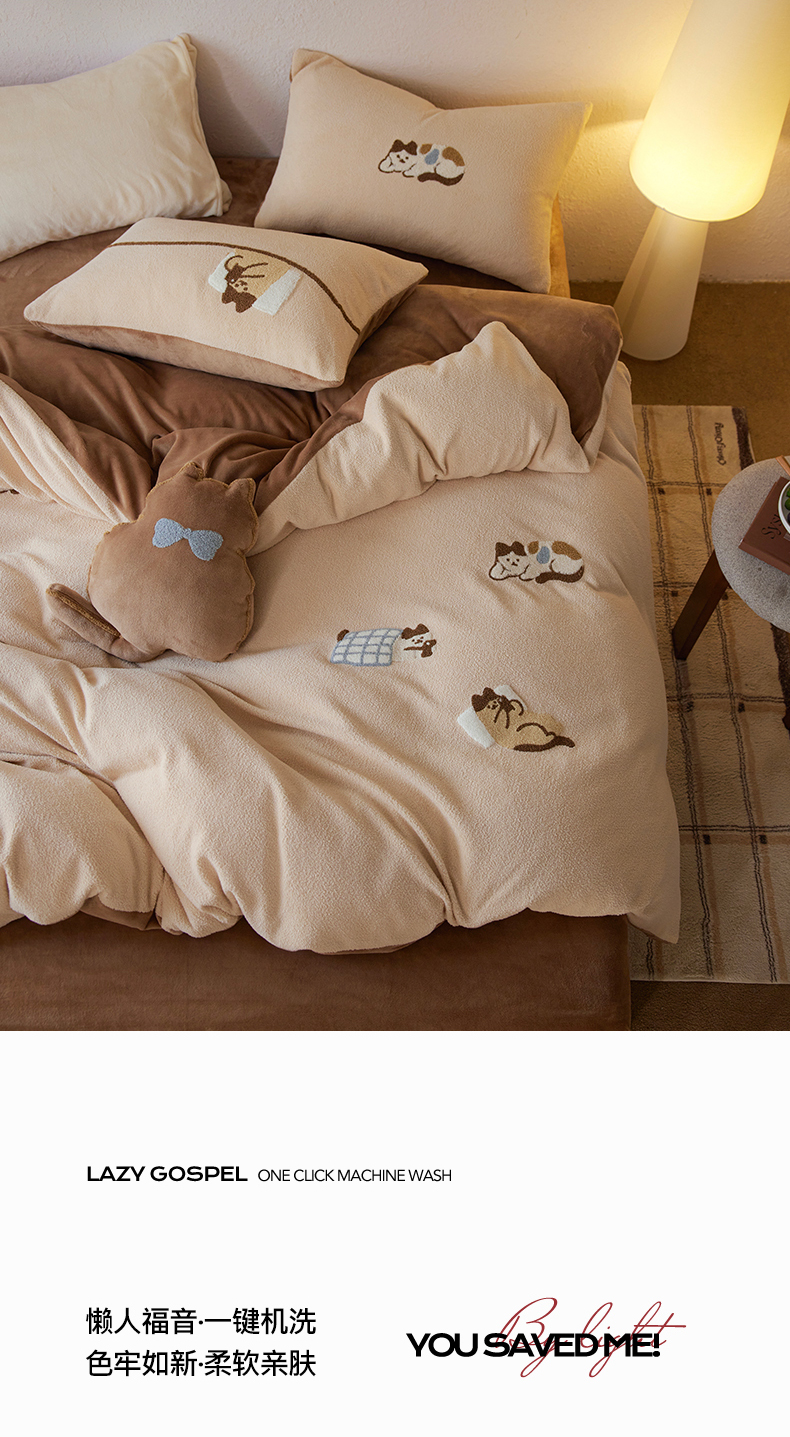 当前位置: 91家纺网 > 商品网购 > 床品套件 > 四件套 > 毛巾绣四件套 > 风向标家纺 2025新款卡通全消光暖呢绒毛巾绣四件套-风格一 躺平猫-奶茶