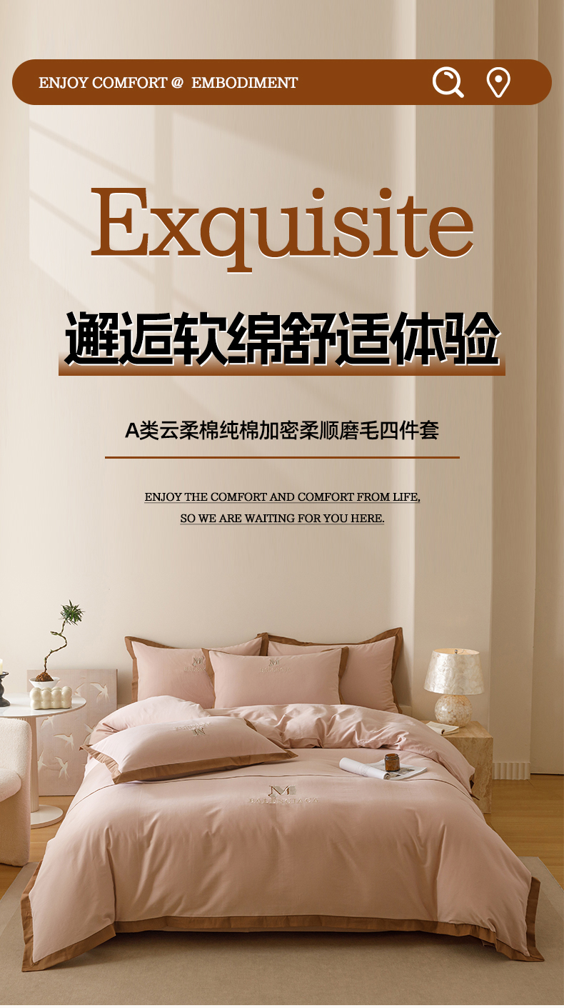 (总)艾莱家纺 2025新款A类50S云柔棉加密柔顺磨毛四件套-依人梦,依人梦-巴黎粉,依人梦-高级灰,依人梦-浪漫紫,依人梦-浅香槟