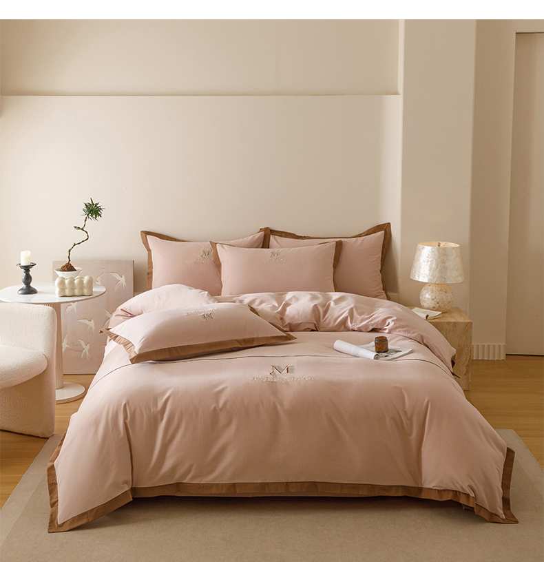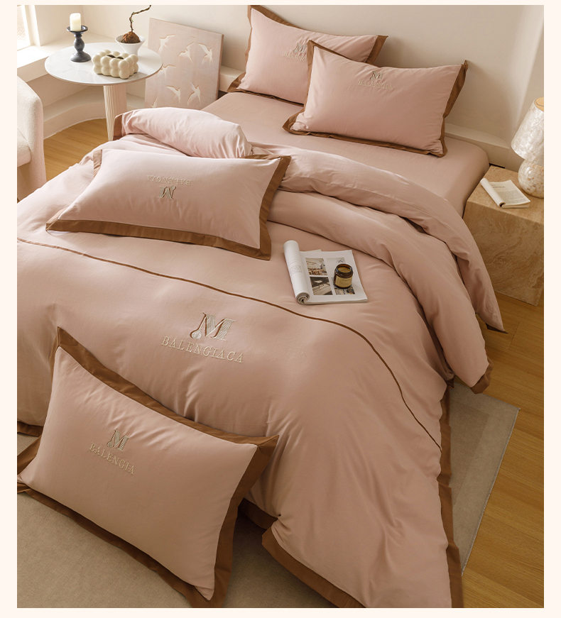 艾莱家纺 2025新款A类50S云柔棉加密柔顺磨毛四件套-依人梦 依人梦-巴黎粉