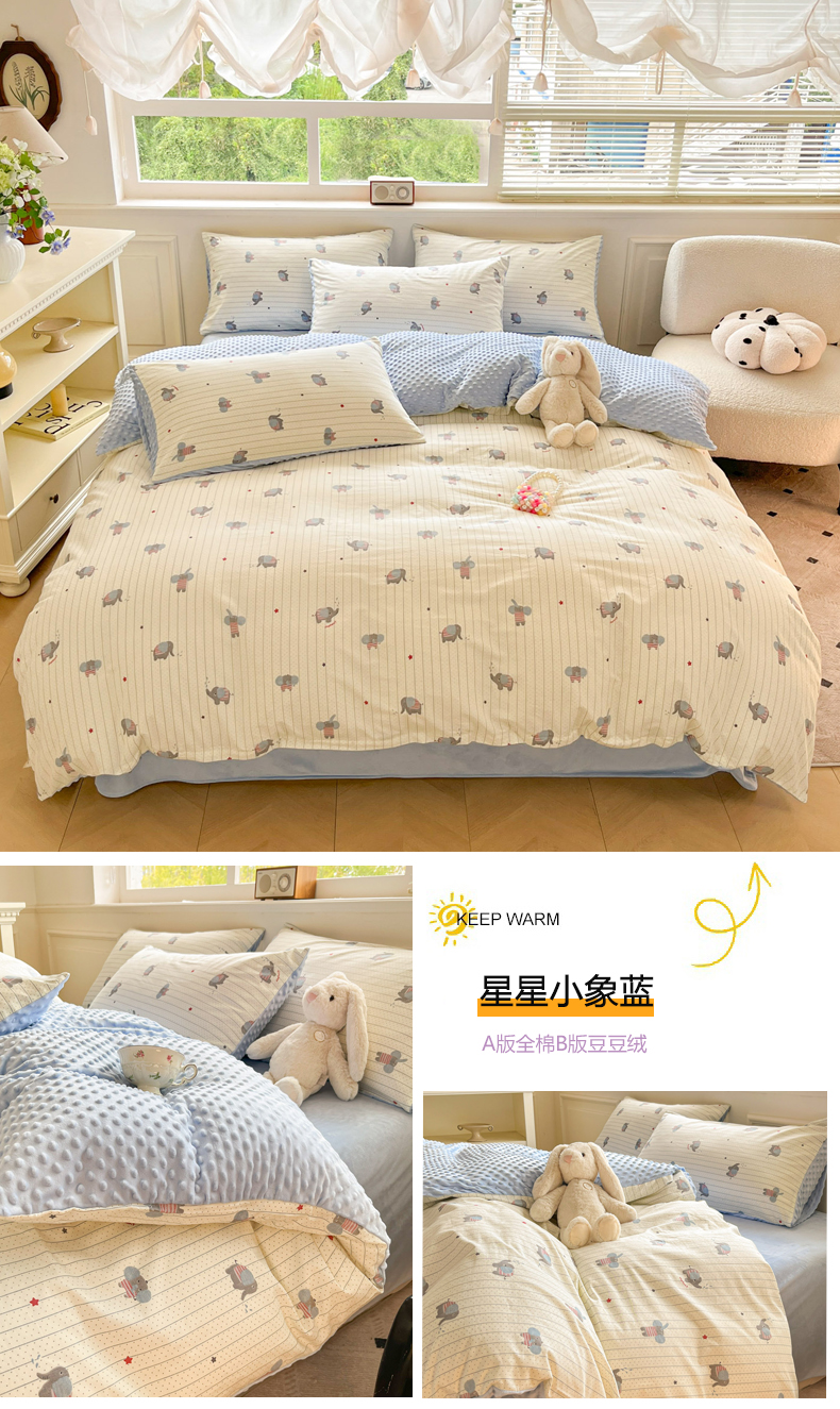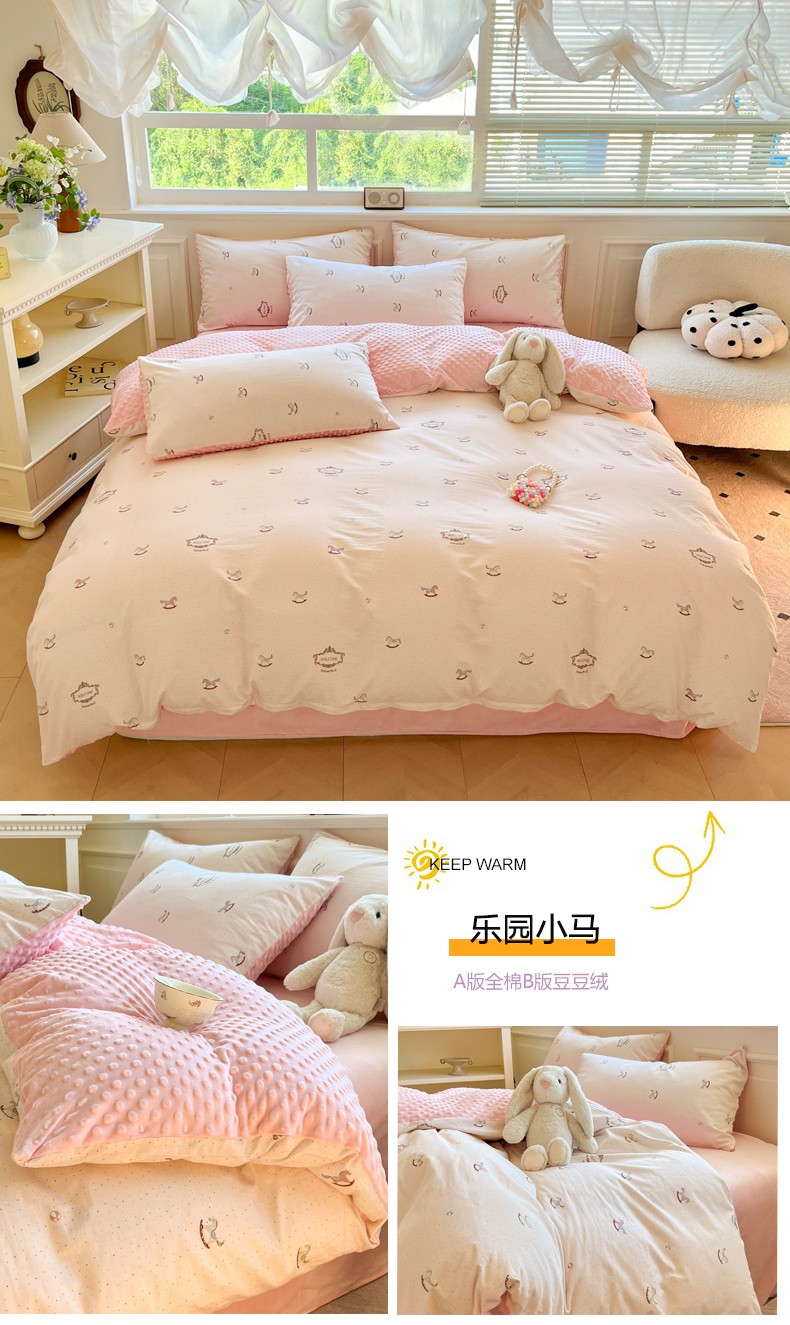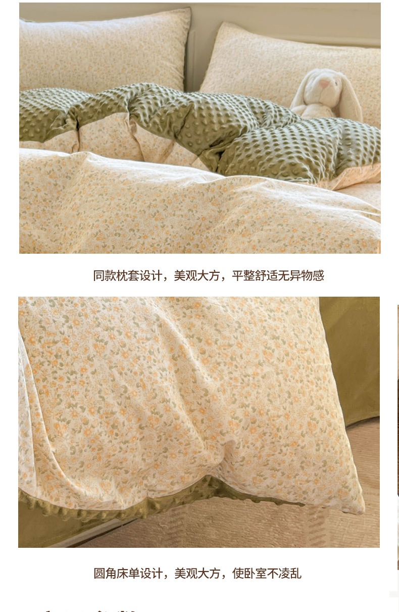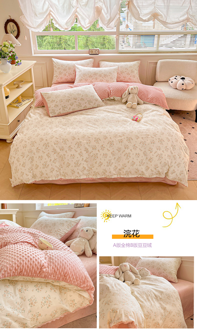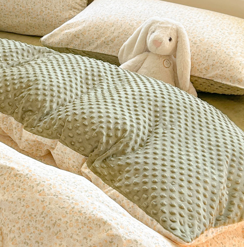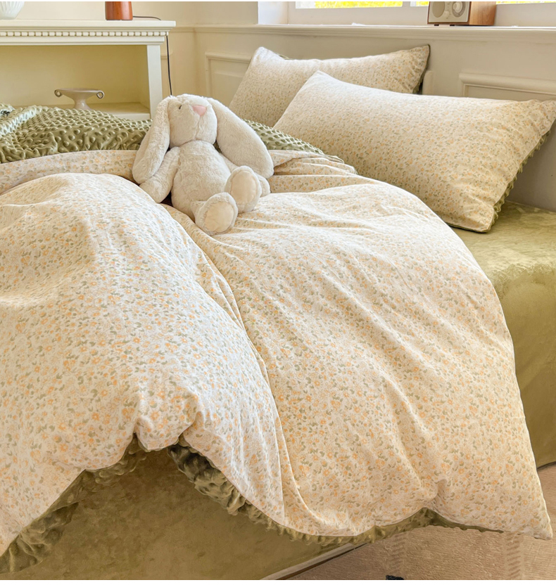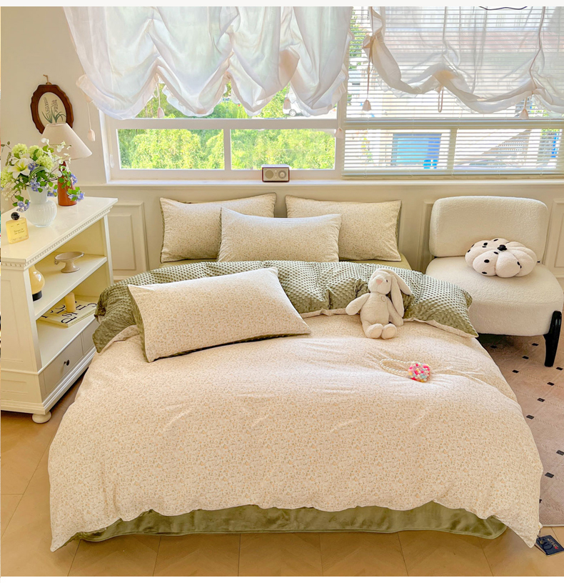 当前位置: 91家纺网 > 商品网购 > 床品套件 > 四件套 > 全棉普通四件套 > 麦伦家居 2025秋冬新品多功能床品全棉+豆豆绒四件套卡通小清新系列 花韵抹茶